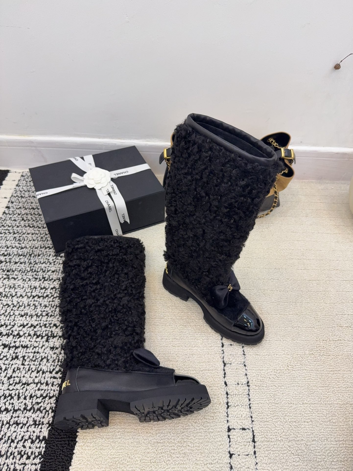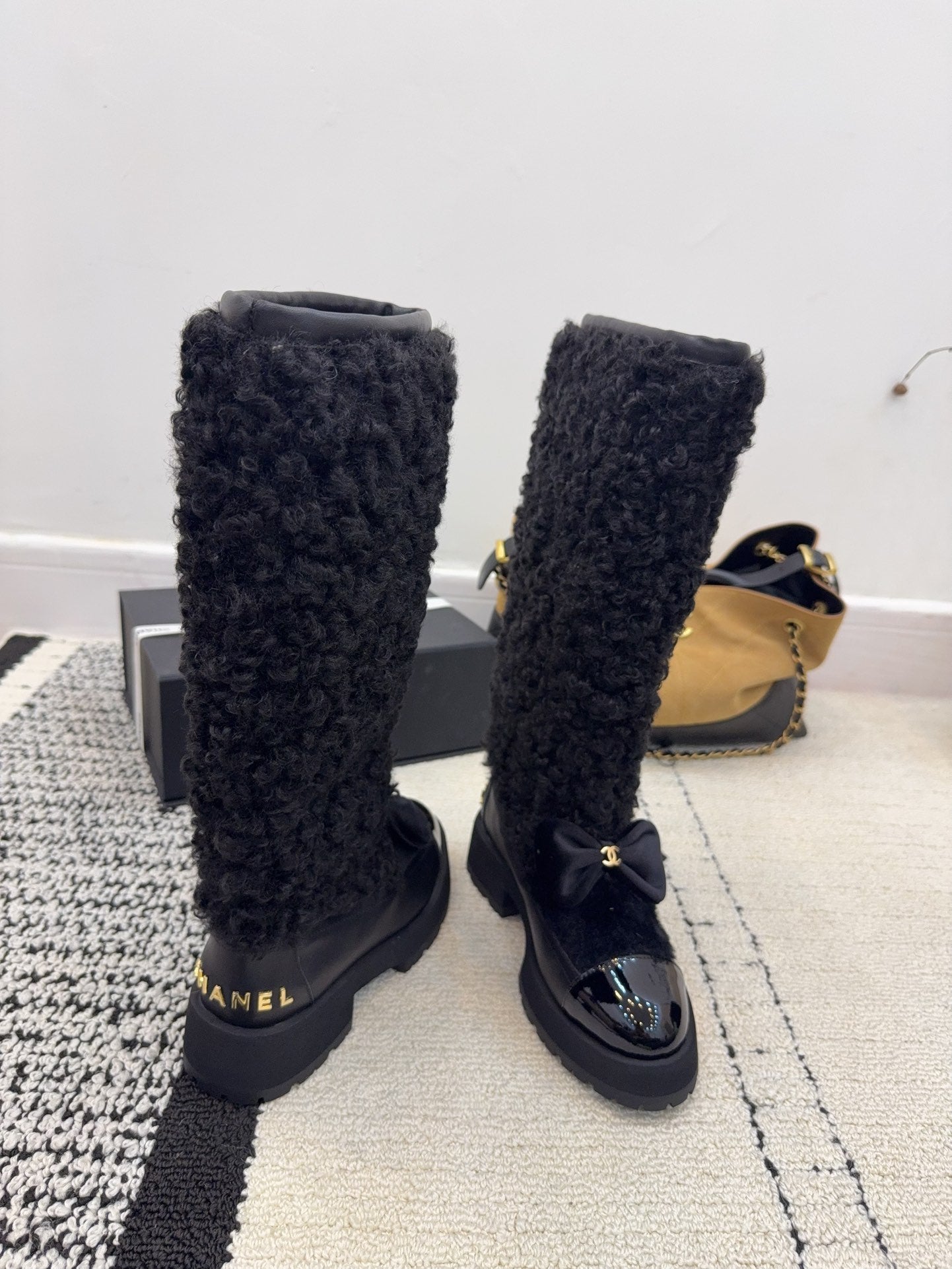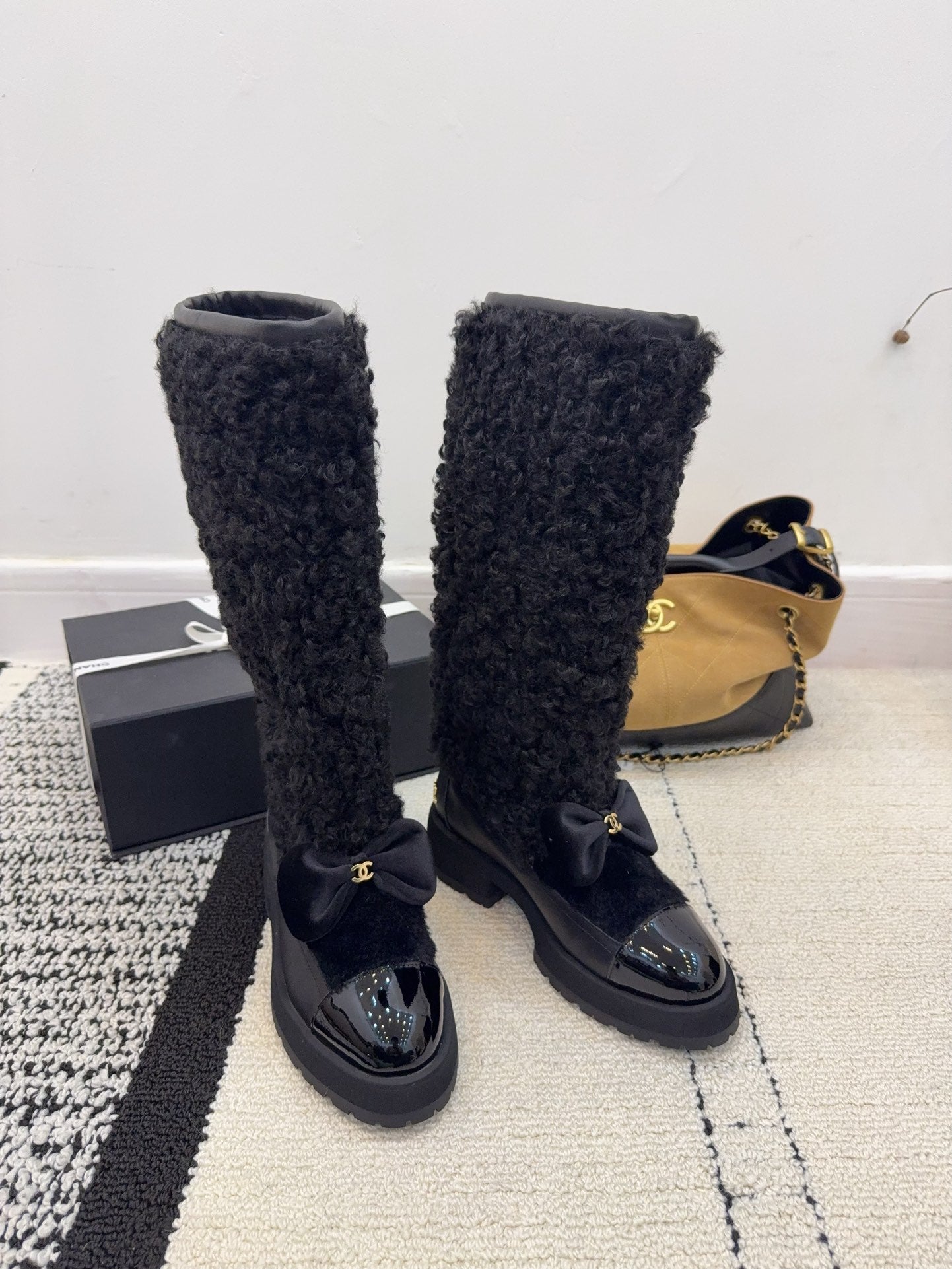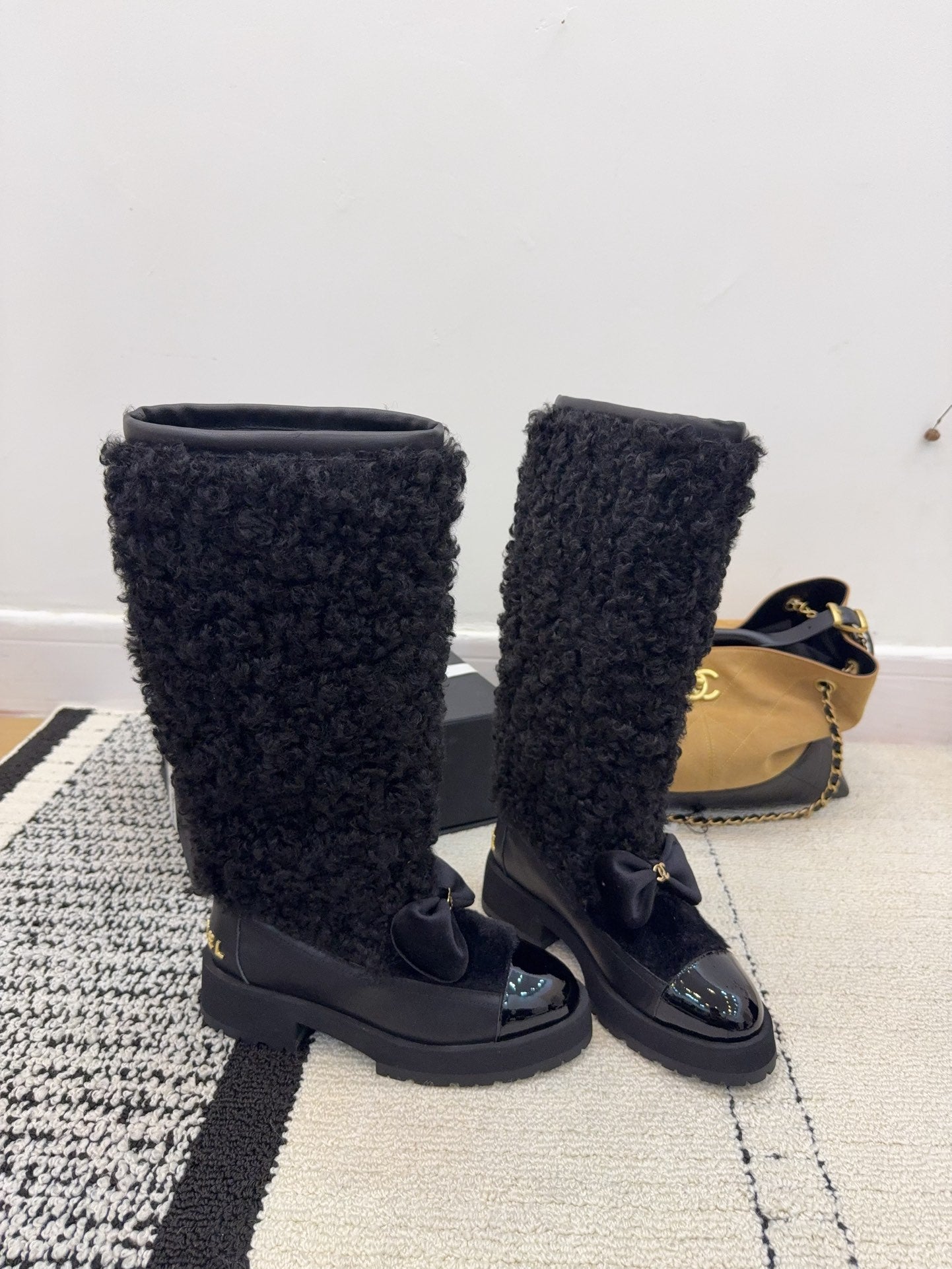 Chanel 25 Shearling Boot Black Wool Leather 537105