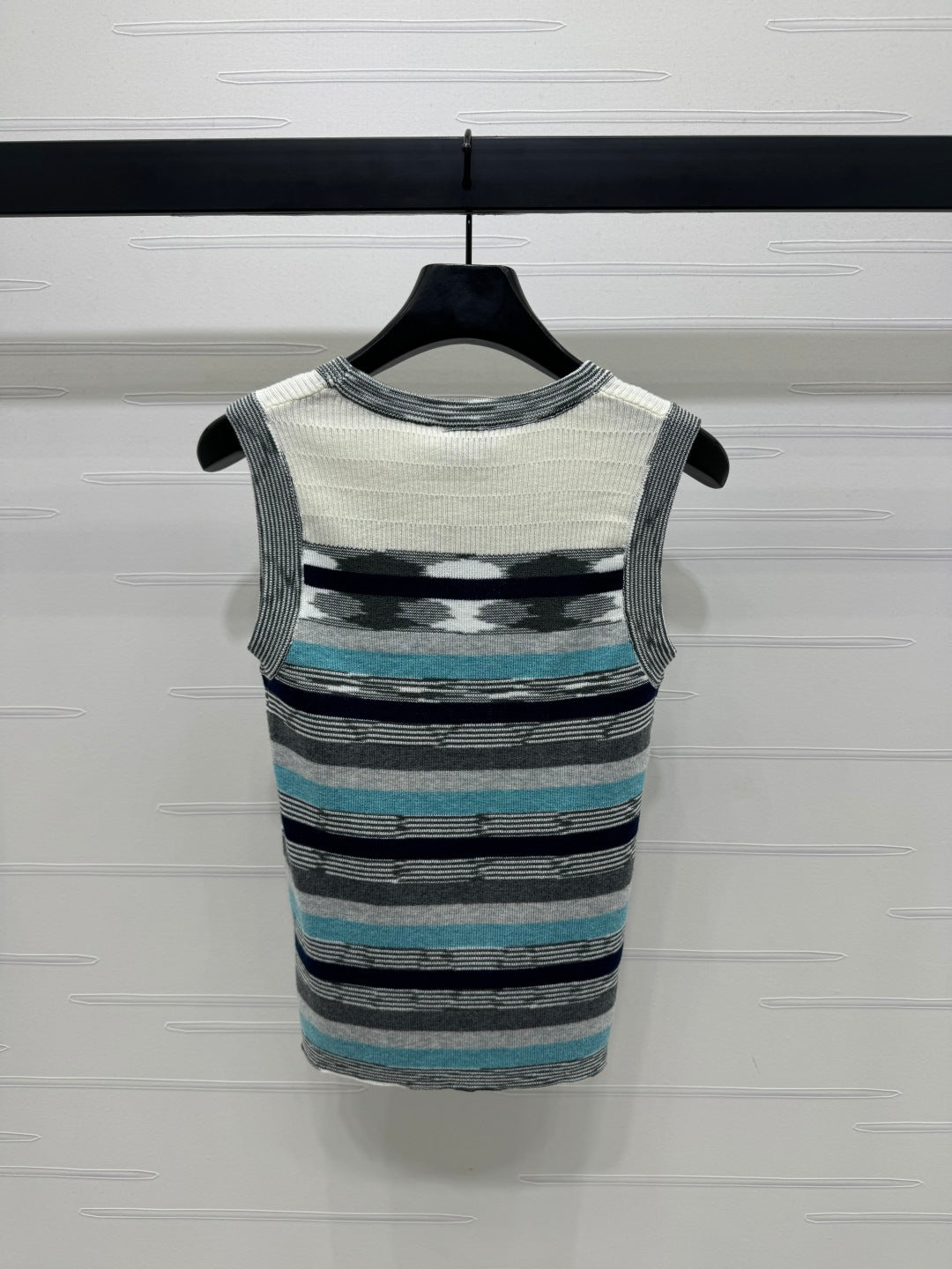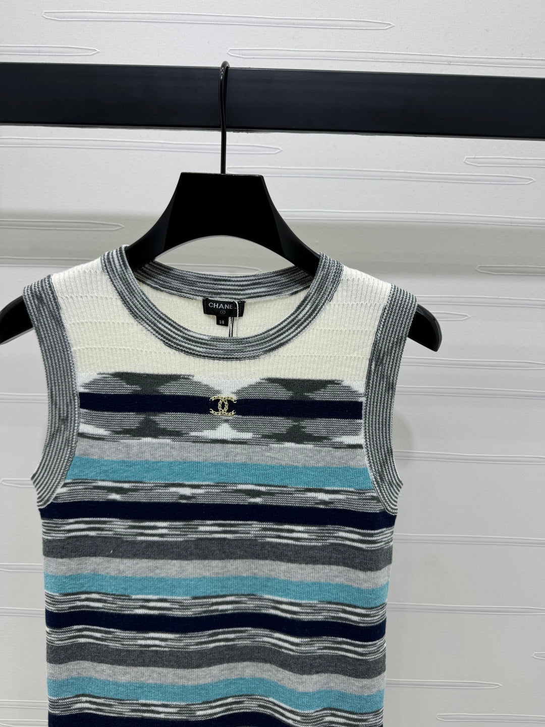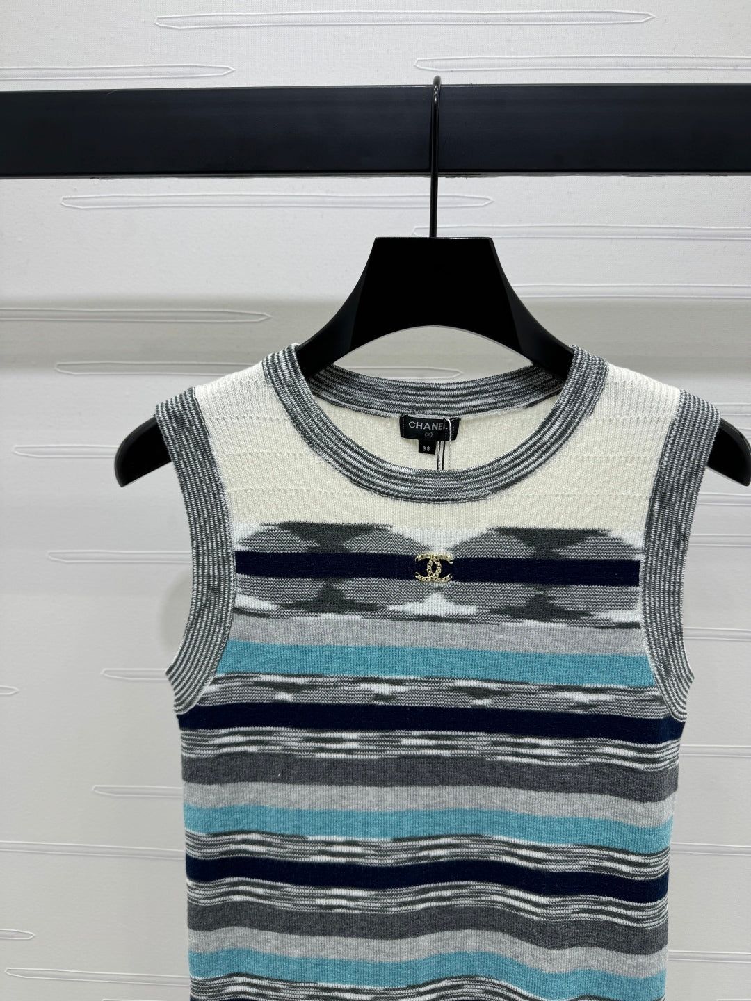 Chanel 25 Sleeveless Striped Top In Blue And Gray