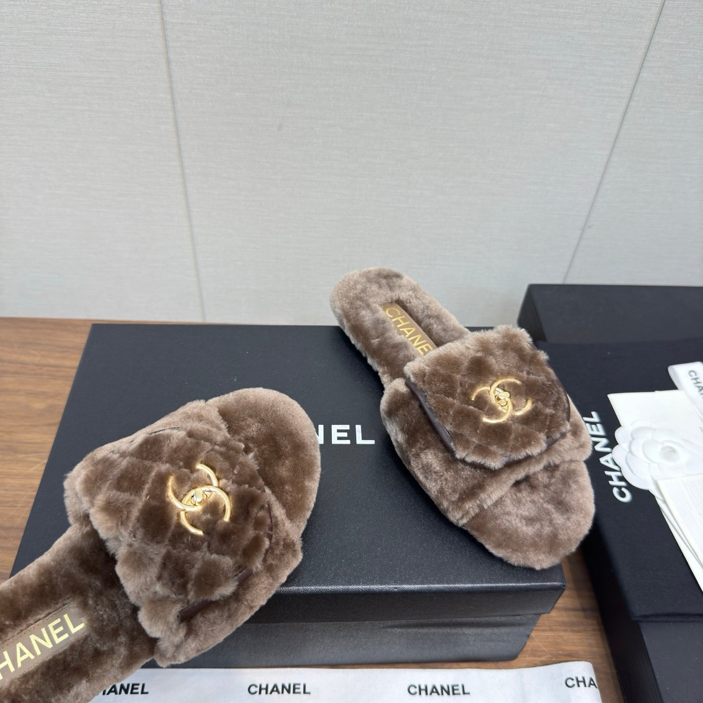 Chanel 25 Slipper Brown Smooth Lambwool 465600