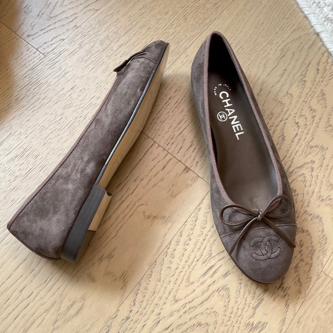 Chanel Ballet Flat Dark Brown Suede