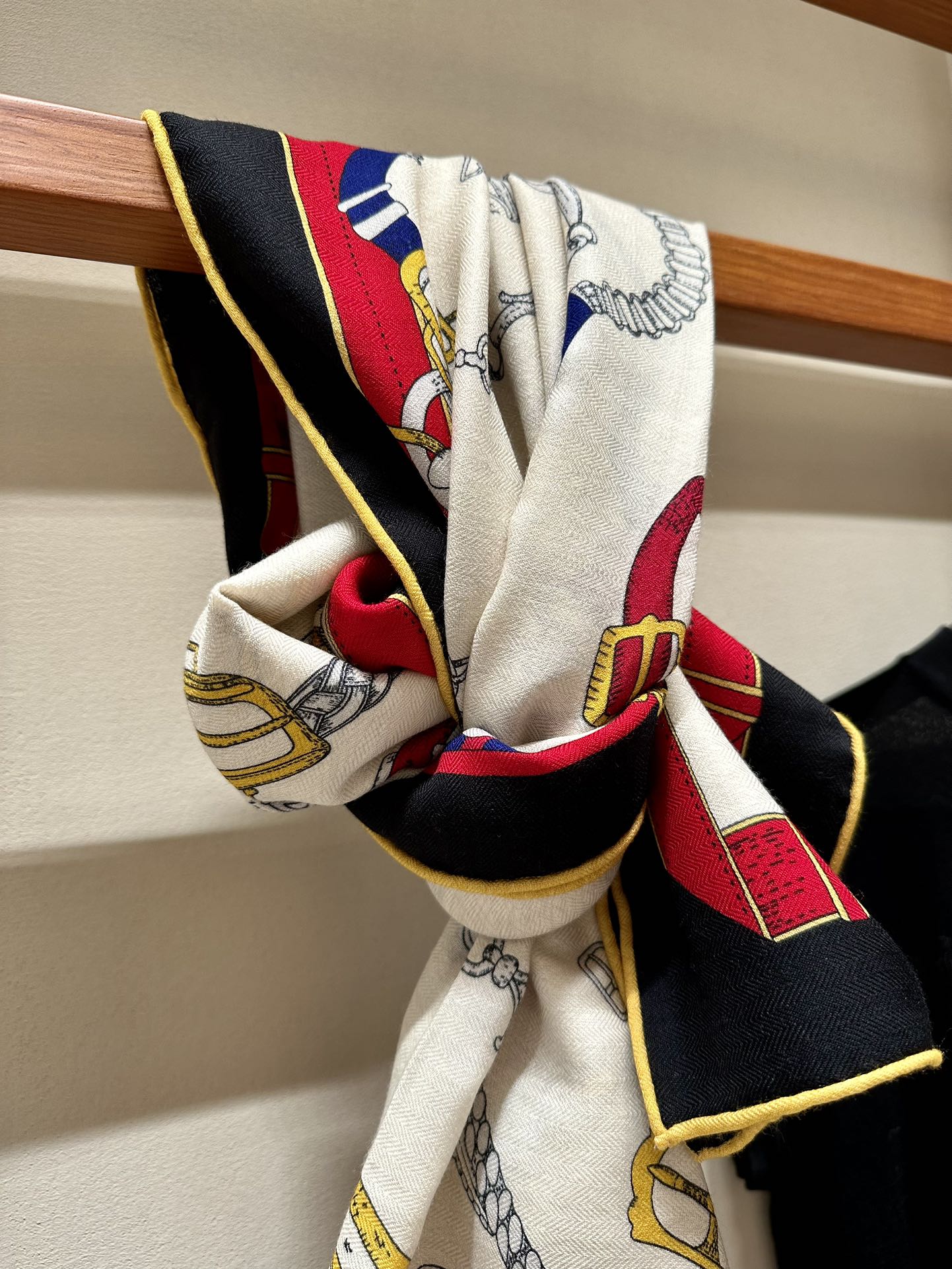 Chevaux Dechaines Shawl 135 CM IN Red Colorful Cashmere Silk 373683