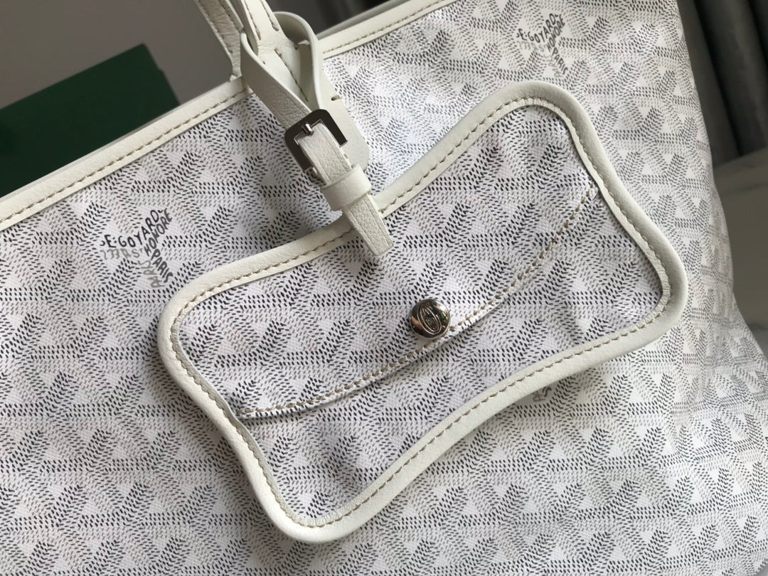 CHIEN GRIS BAG 33 IN WHITE GOYARDINE CANVAS AND TAN CALFSKIN TRIM
