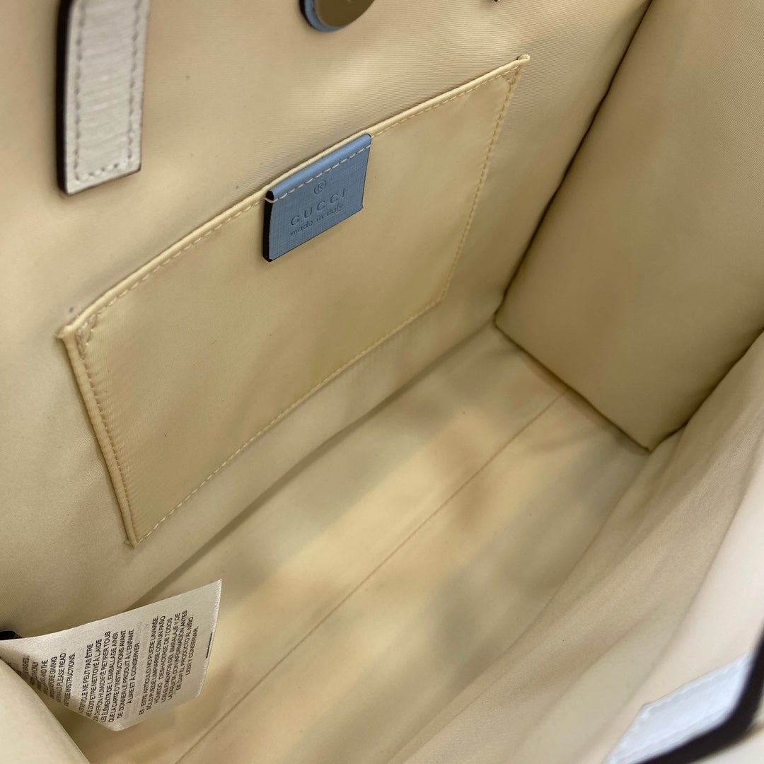 CHILDREN'S PUPPY PRINT TOTE BAG 28 IN BEIGE CANVAS AND WHITE CALFSKIN TRIM