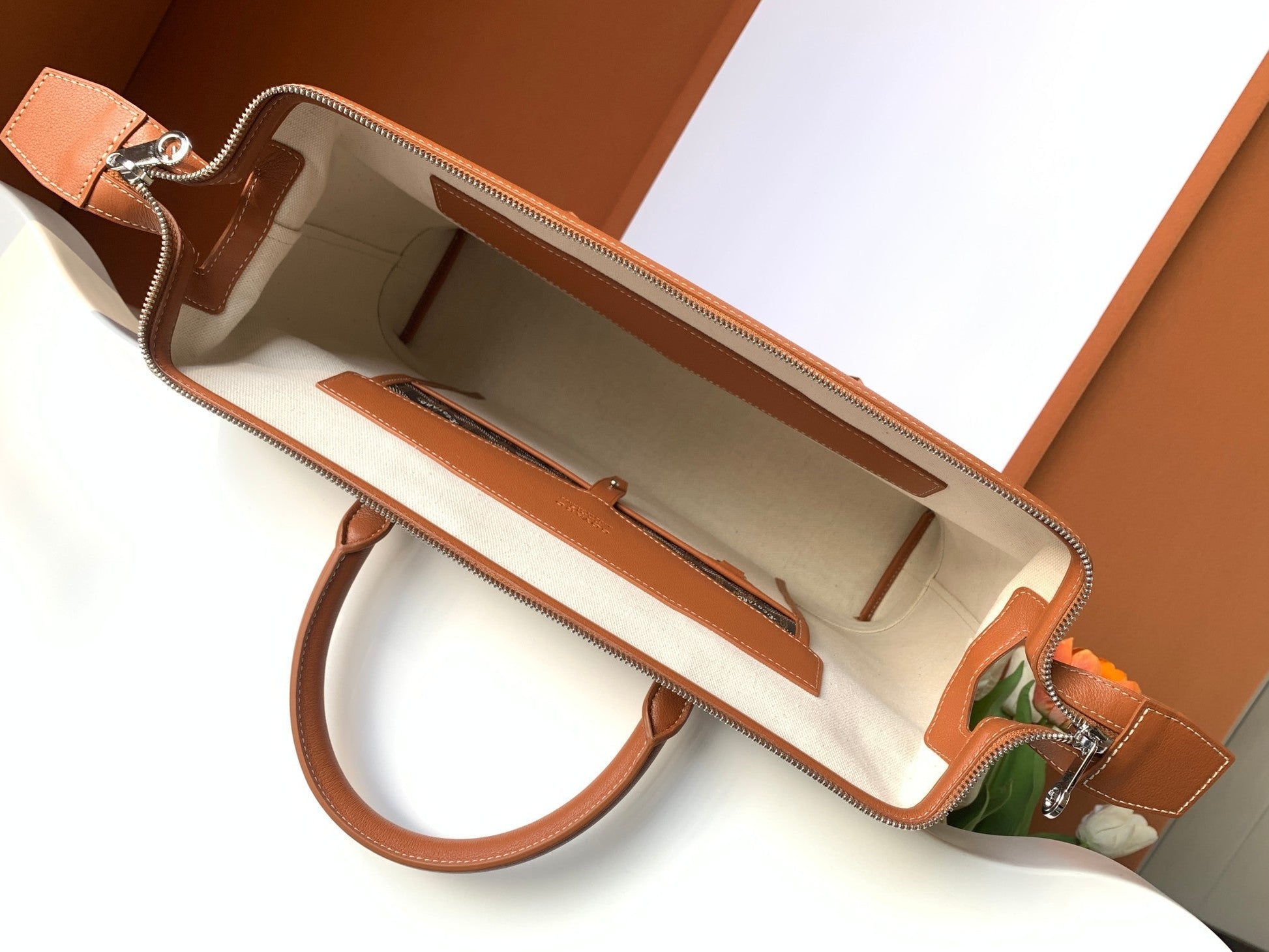 CISALPIN DOCUMENT CASE 39 IN BLACK GOYARDINE CANVAS AND TAN CALFSKIN