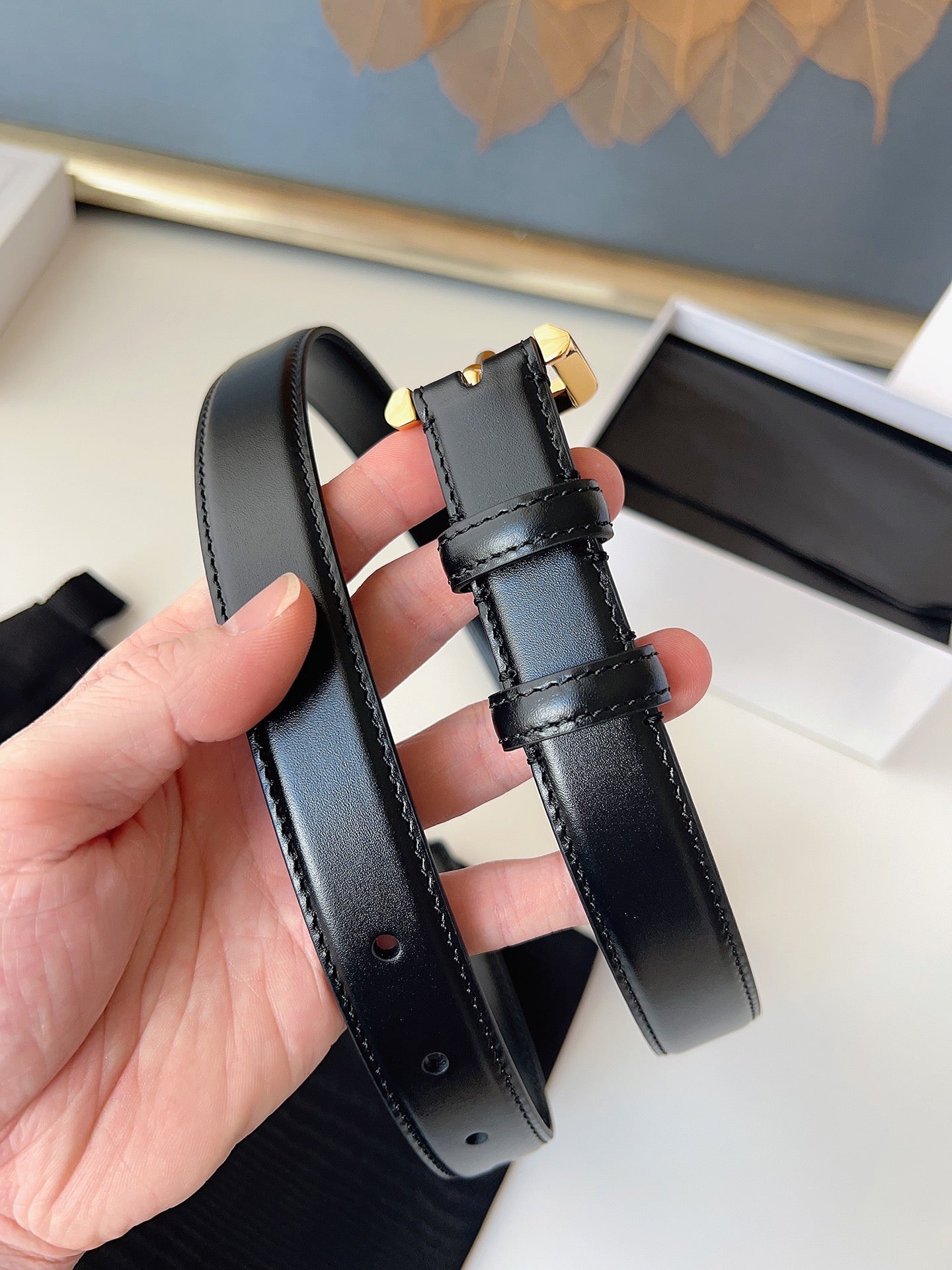 CL Gold 25mm Triomphe Belt Black Cowhide 616412