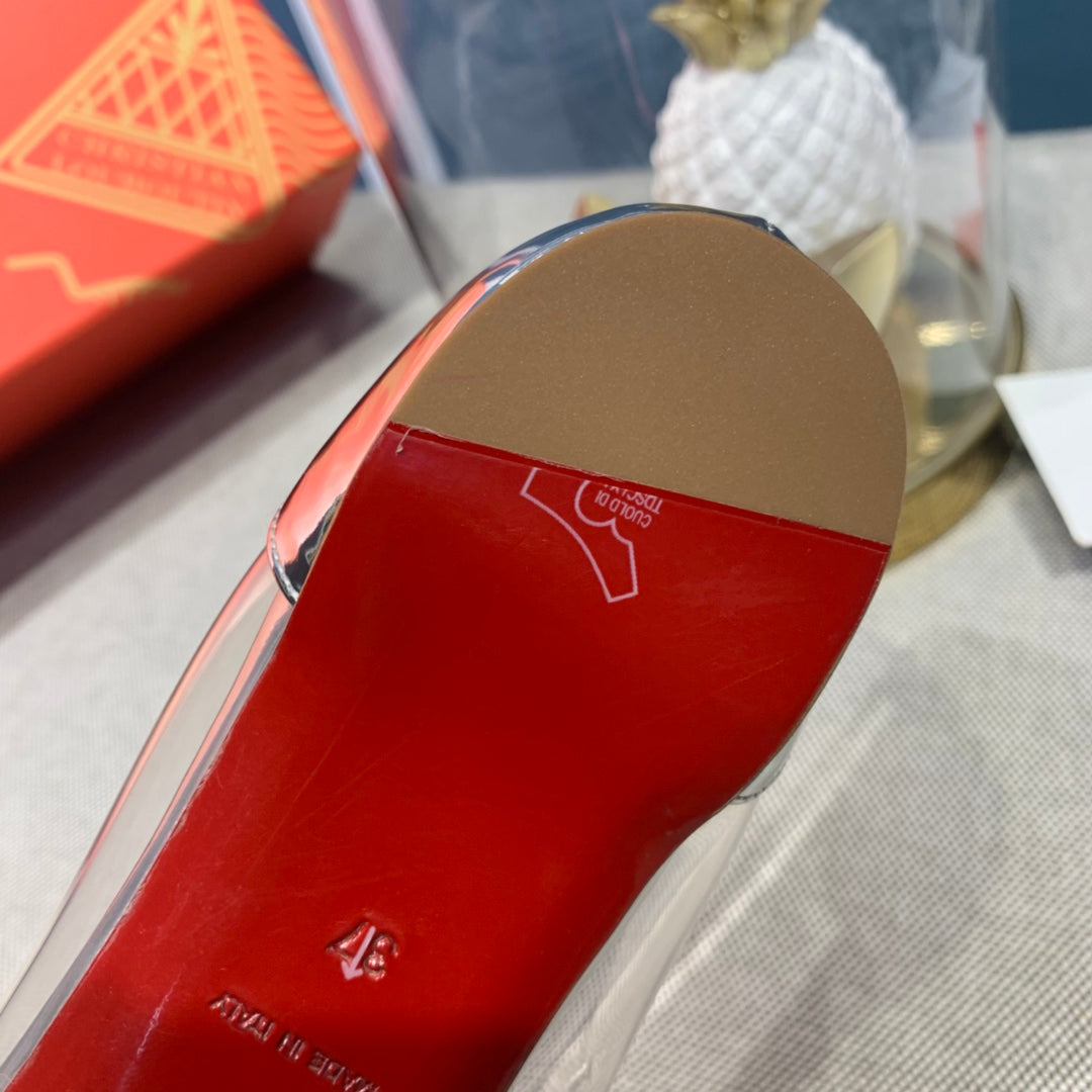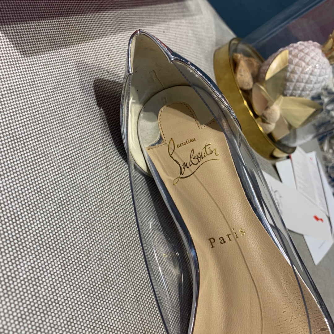 CL Collaclou Spike Clear Flat Embellished Pvc and Metallic Leather Silver