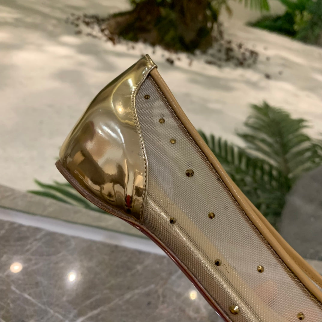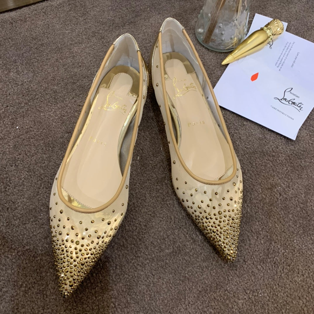 CL Follies Strass Flats Mesh Leather Gold
