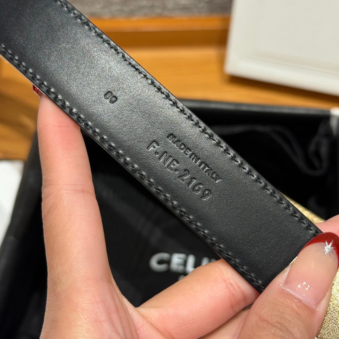 CL Gold 25mm Triomphe Metal Gold Metallic Black Cowhide 615555