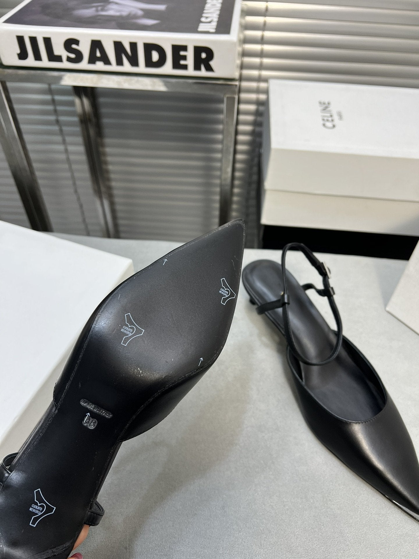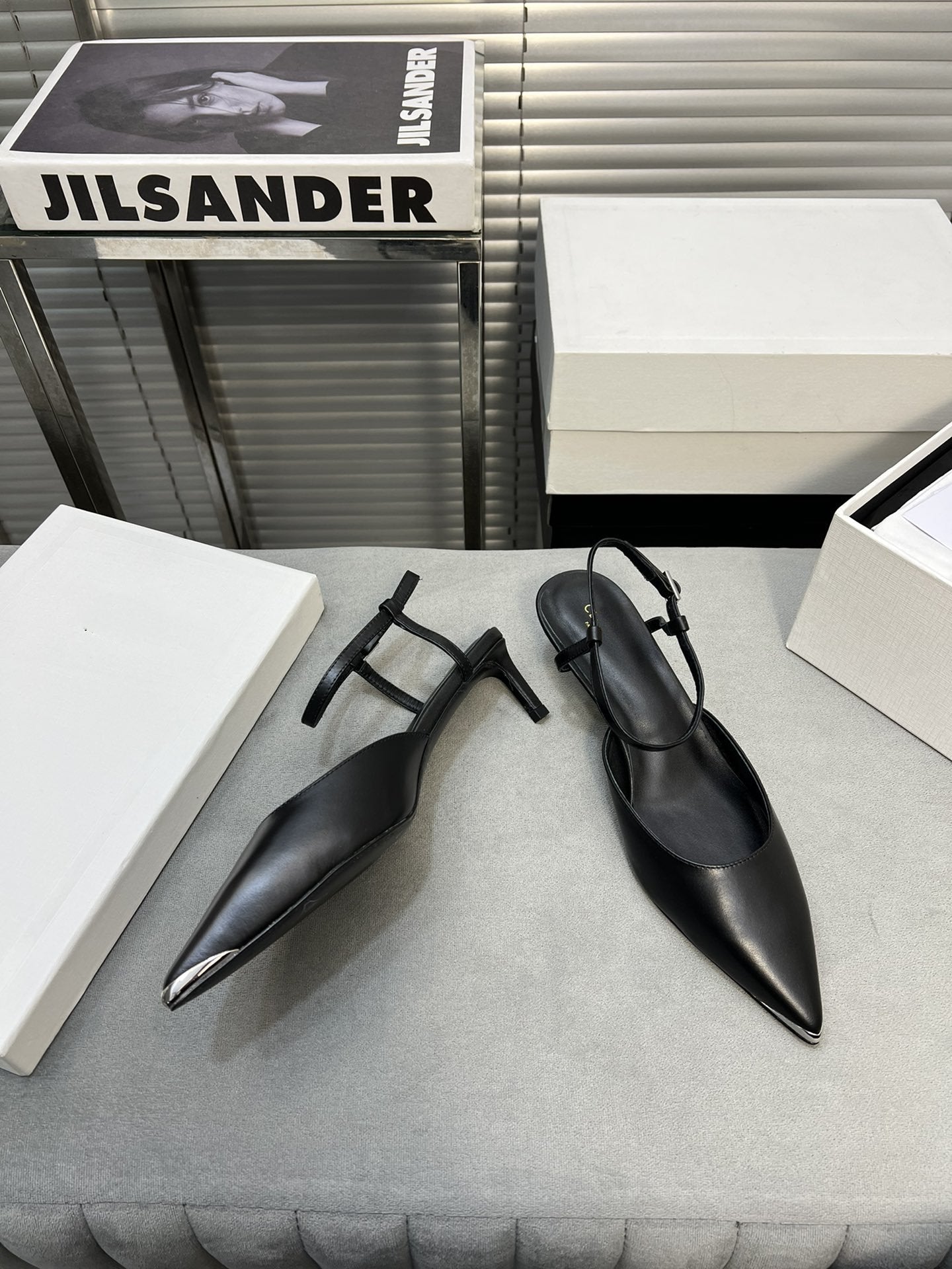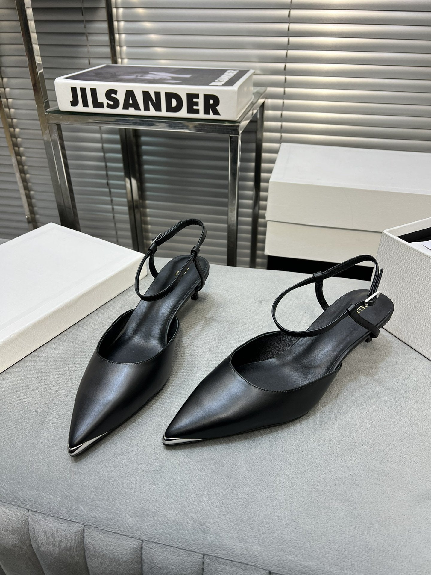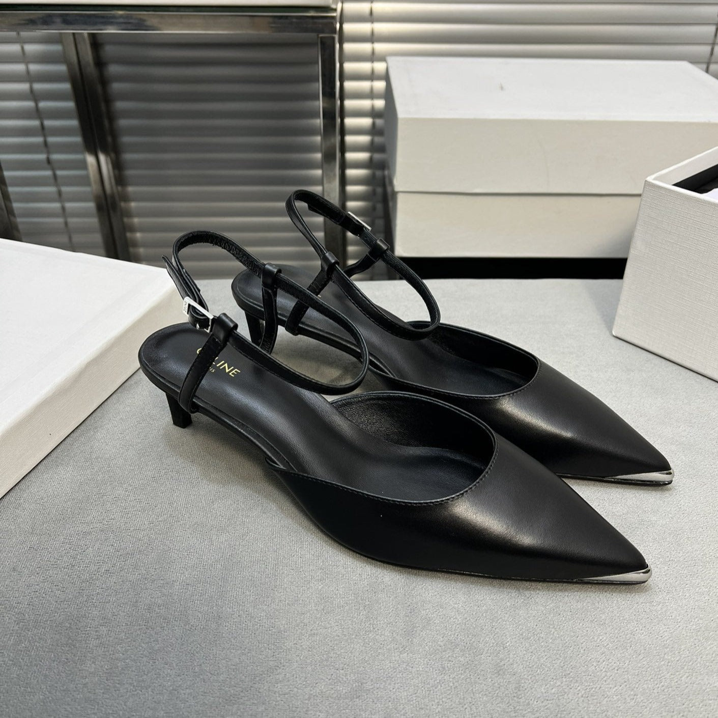 cl kitten 50 with metal toe black calfskin