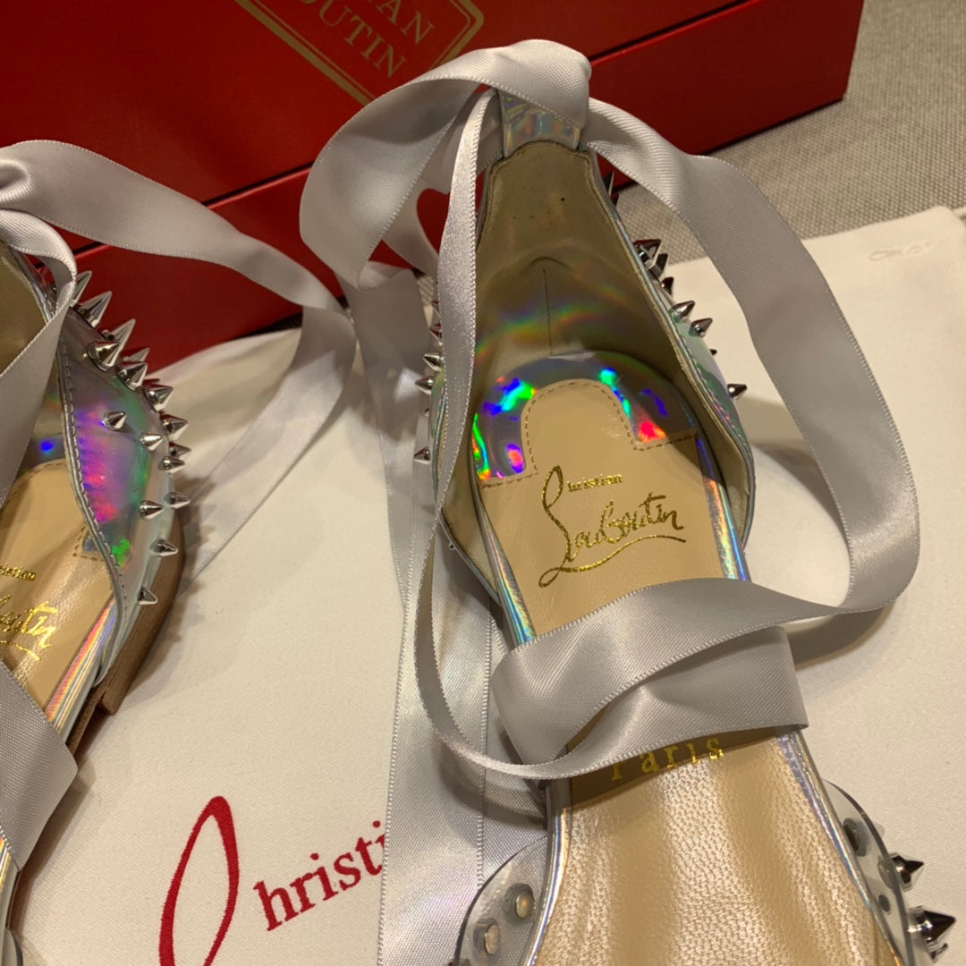 CL Mechante Reine Flats Spike Leather and PVC Silver