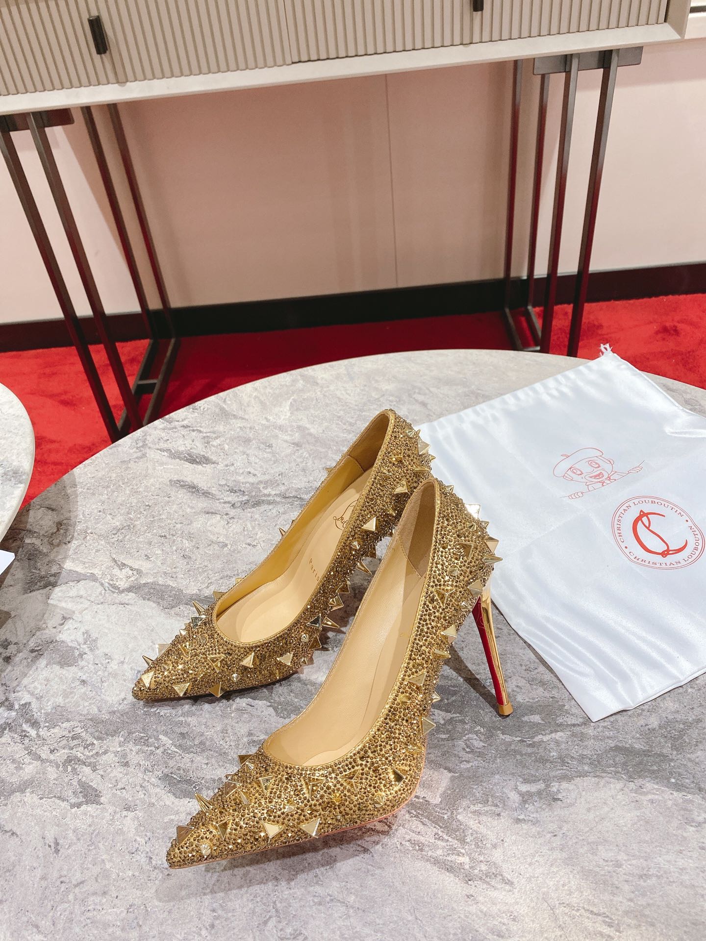 CL Pigalili Potpourri Strass Pumps Glitter Gold