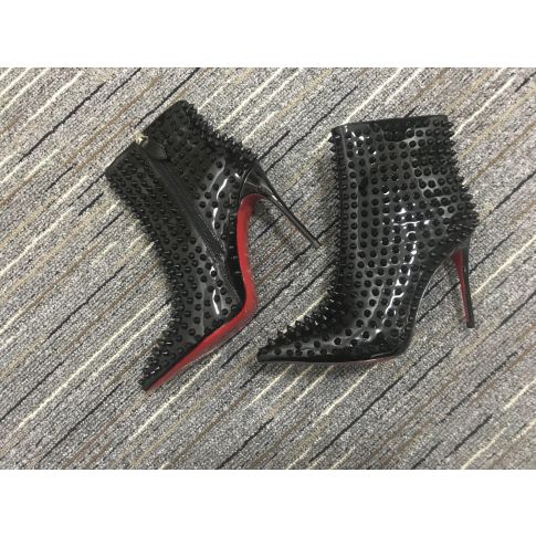 CL Snakilta Spiked Ankle Boots 100mm Patent Leather Black
