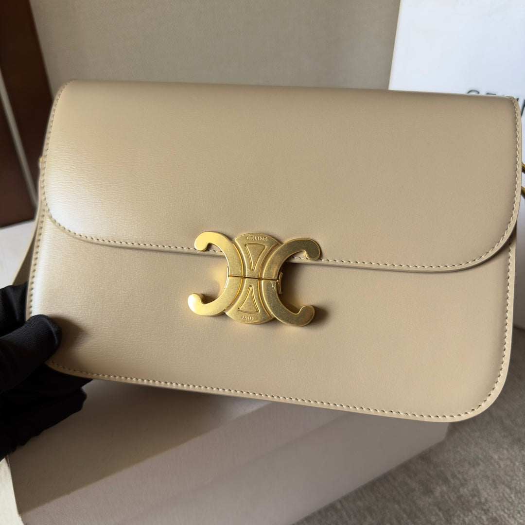 classique triomphe 22 beige calfskin gold hardware