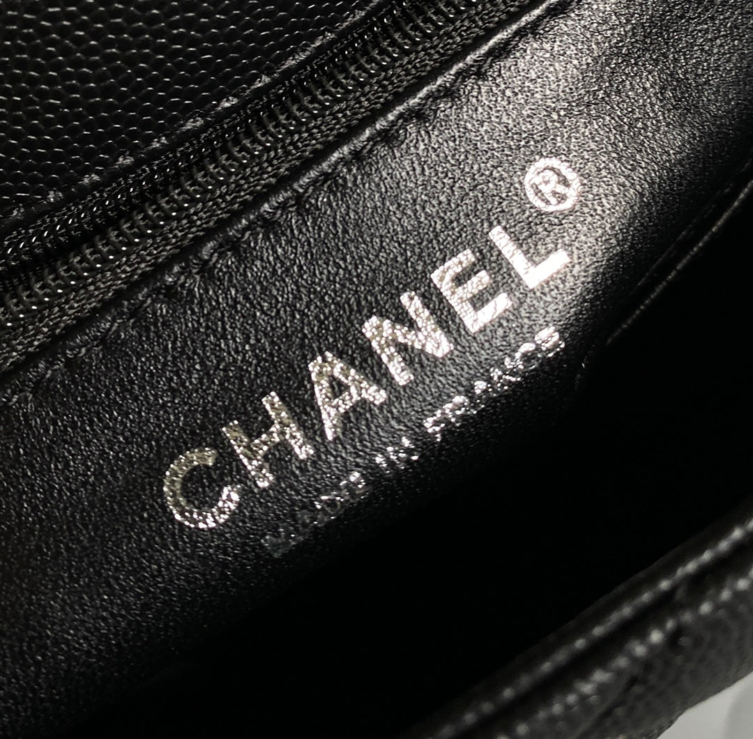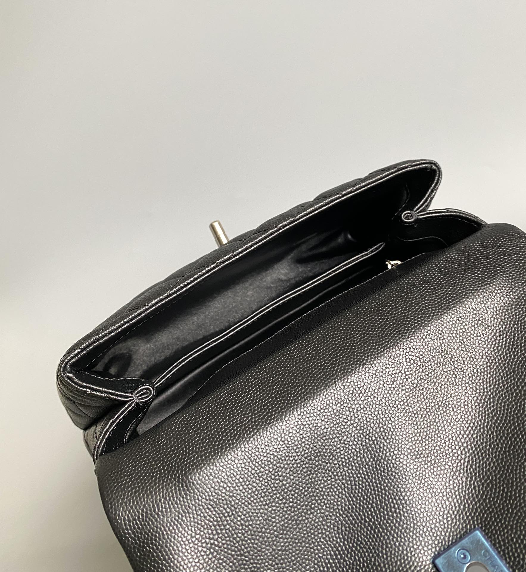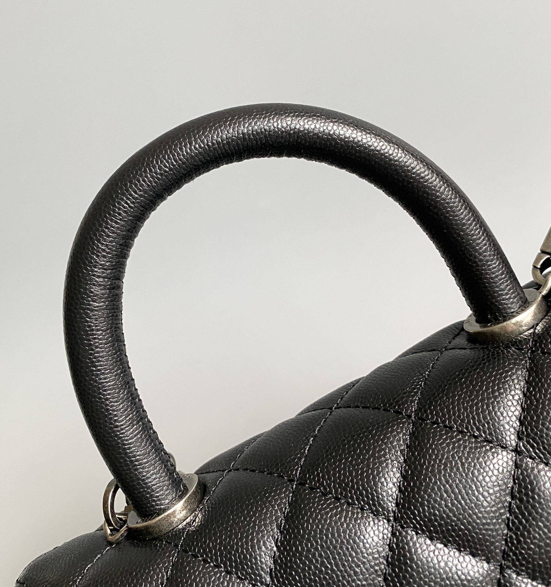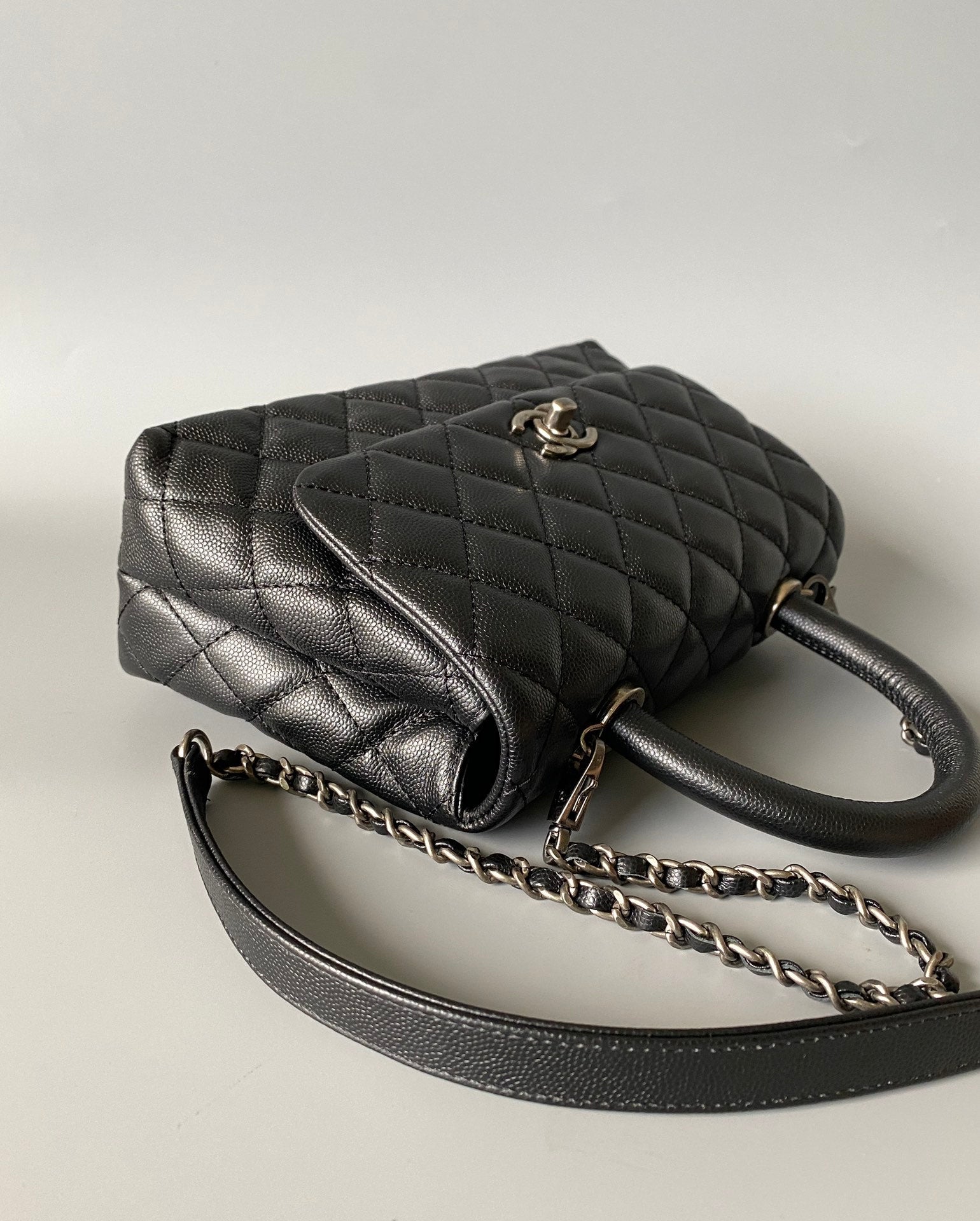 coco handle flap bag 23cm black quilted caviar black top handle