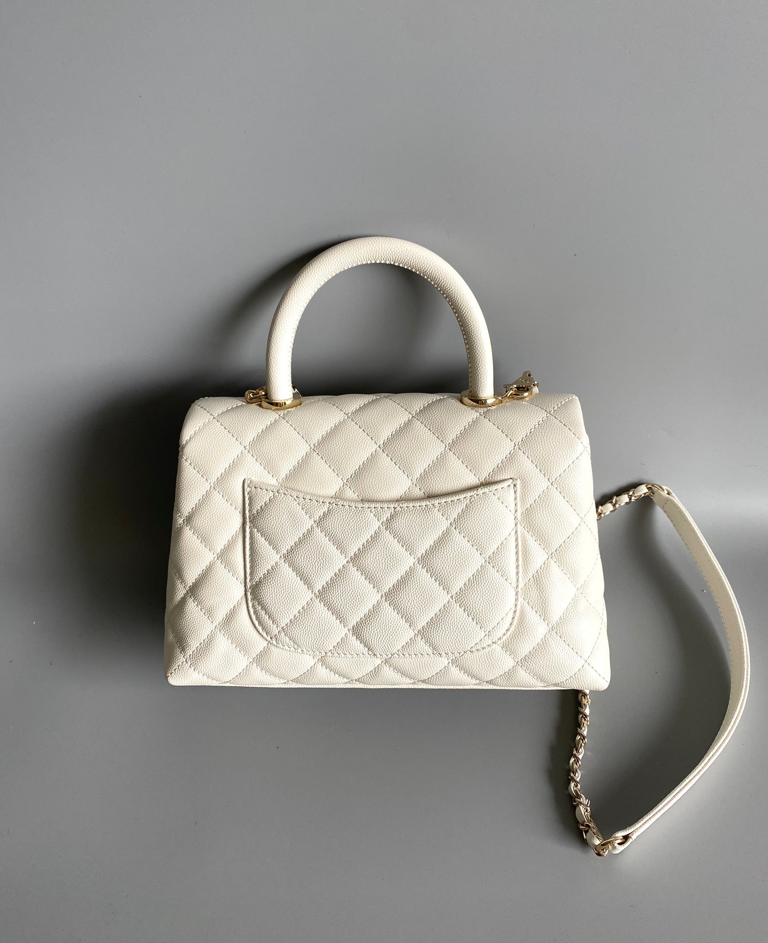 coco handle flap bag 23cm white quilted caviar light gold hardware