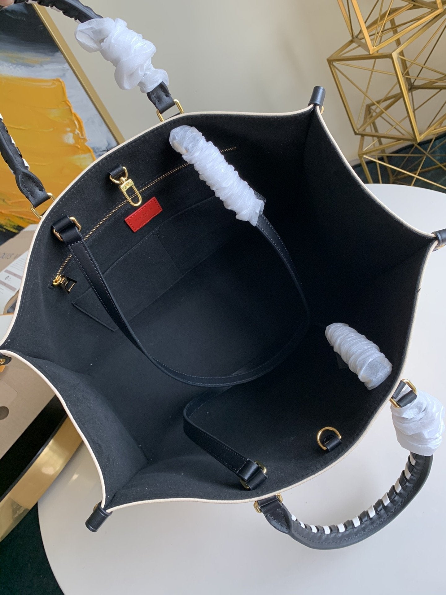 CRAFTY ONTHEGO GM 41 CREME BLACK MONOGRAM GIANT CANVAS
