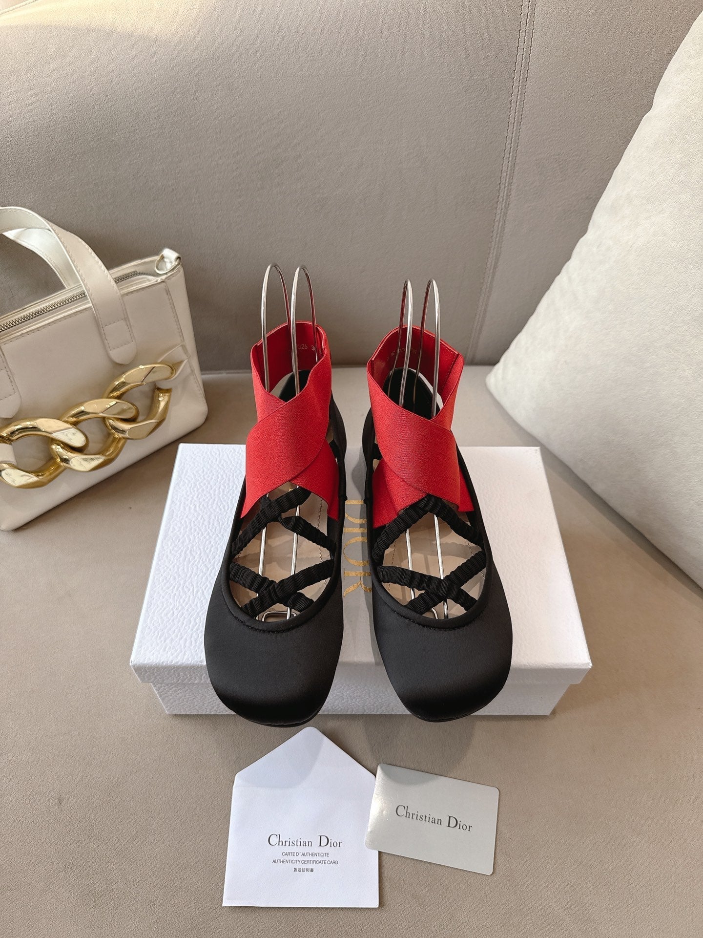 Dior Ballet Shoe Black Red Sheepskin Frabic 174737