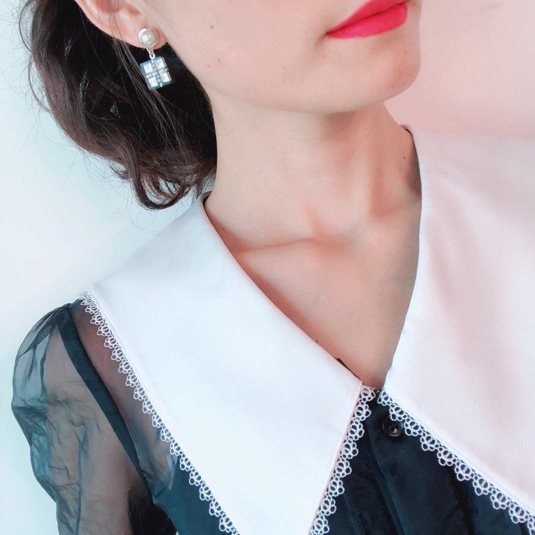 DOUBLE C PEARL GOLD DIAMOND EARRINGS