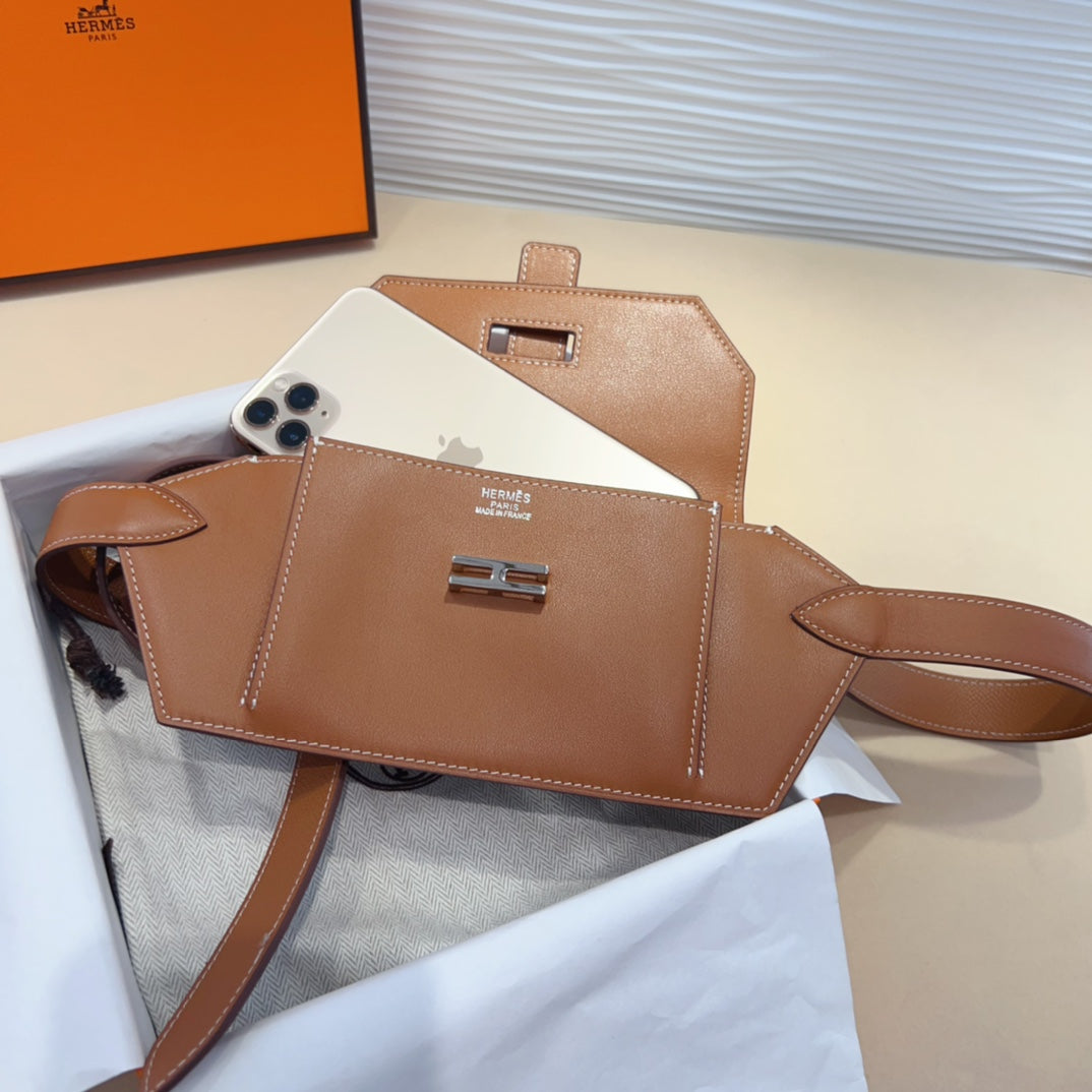 elan pocket 30 belt brown bag silver hardware