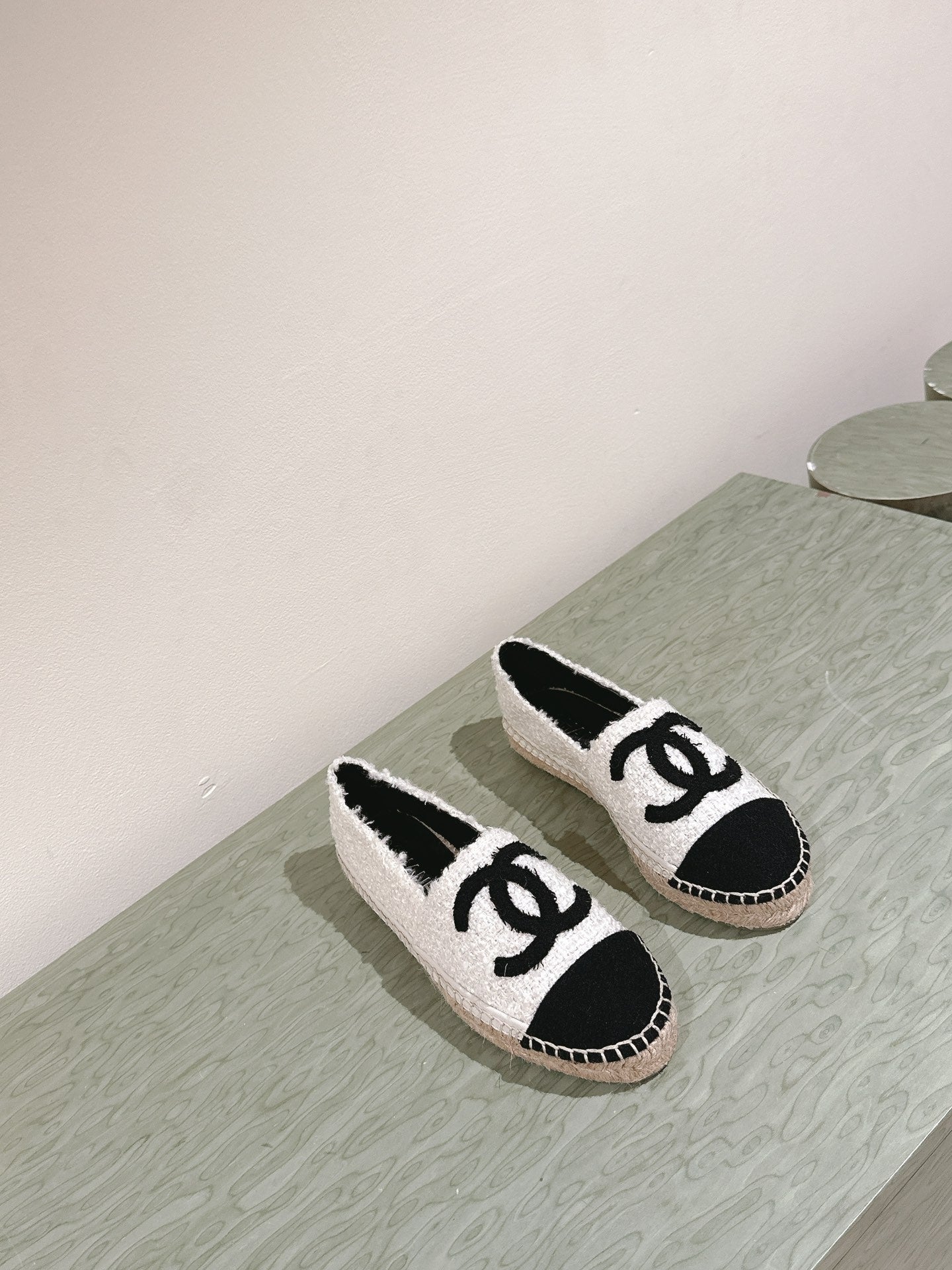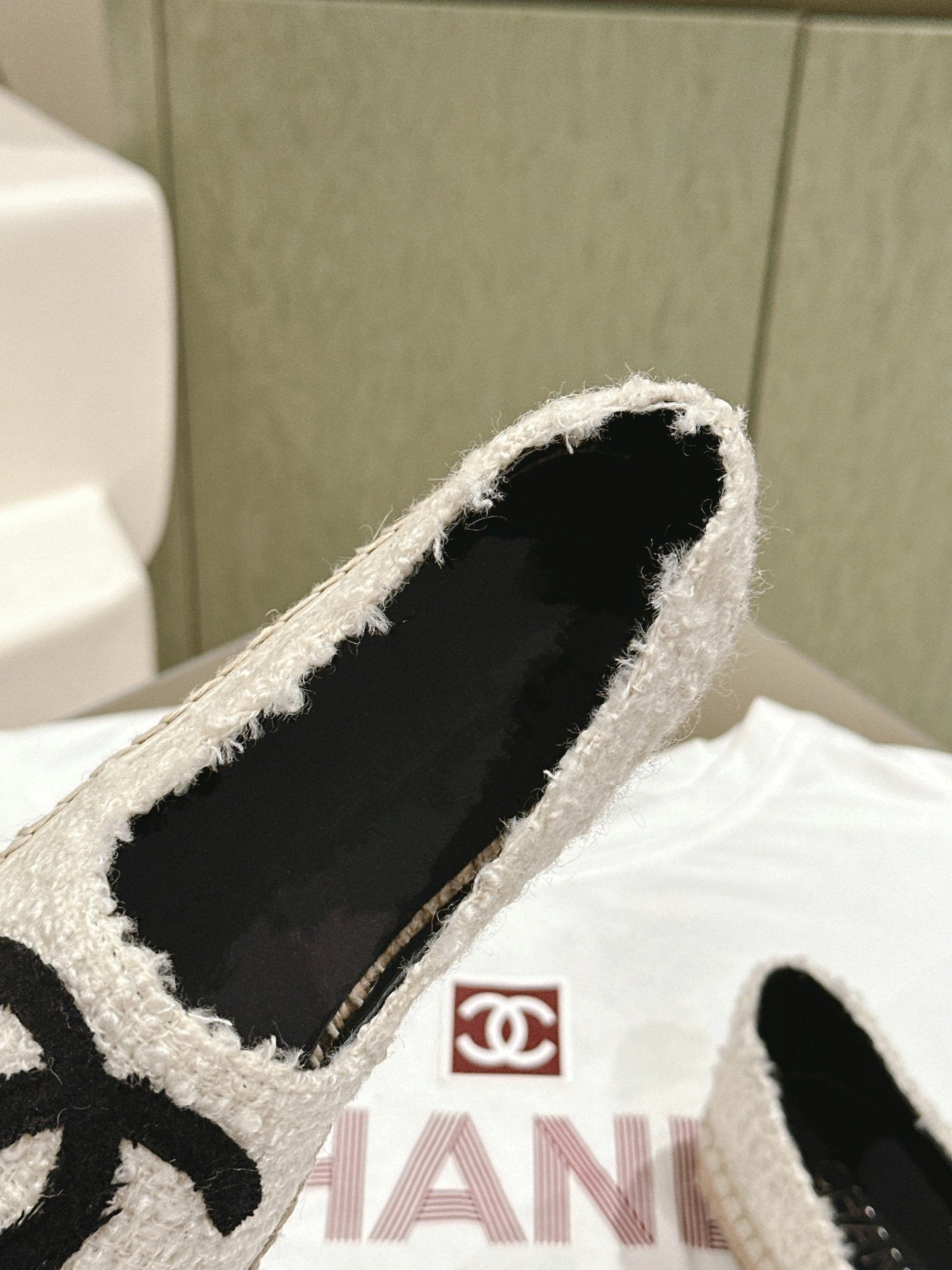 espadrilles white tweed black canvas