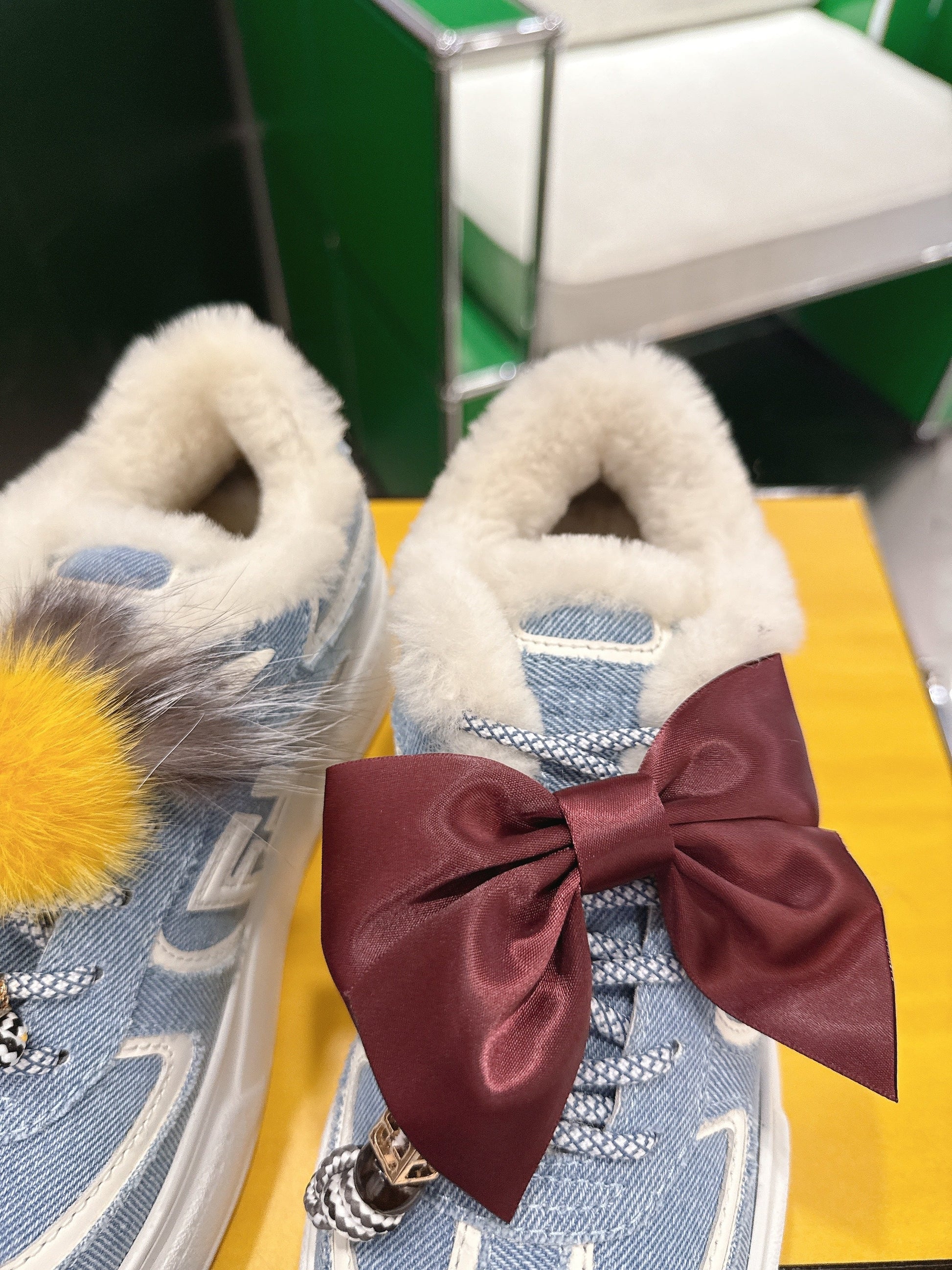 Fendi 2025 Match Platform Sneakers Blue White Denim Fabric Wool 562583
