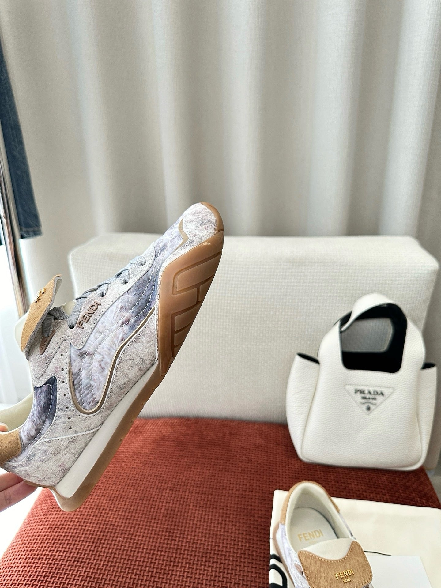Fendi 2025 Wave Pulse Sneaker White Gray Brown Suede Cowhide 562138