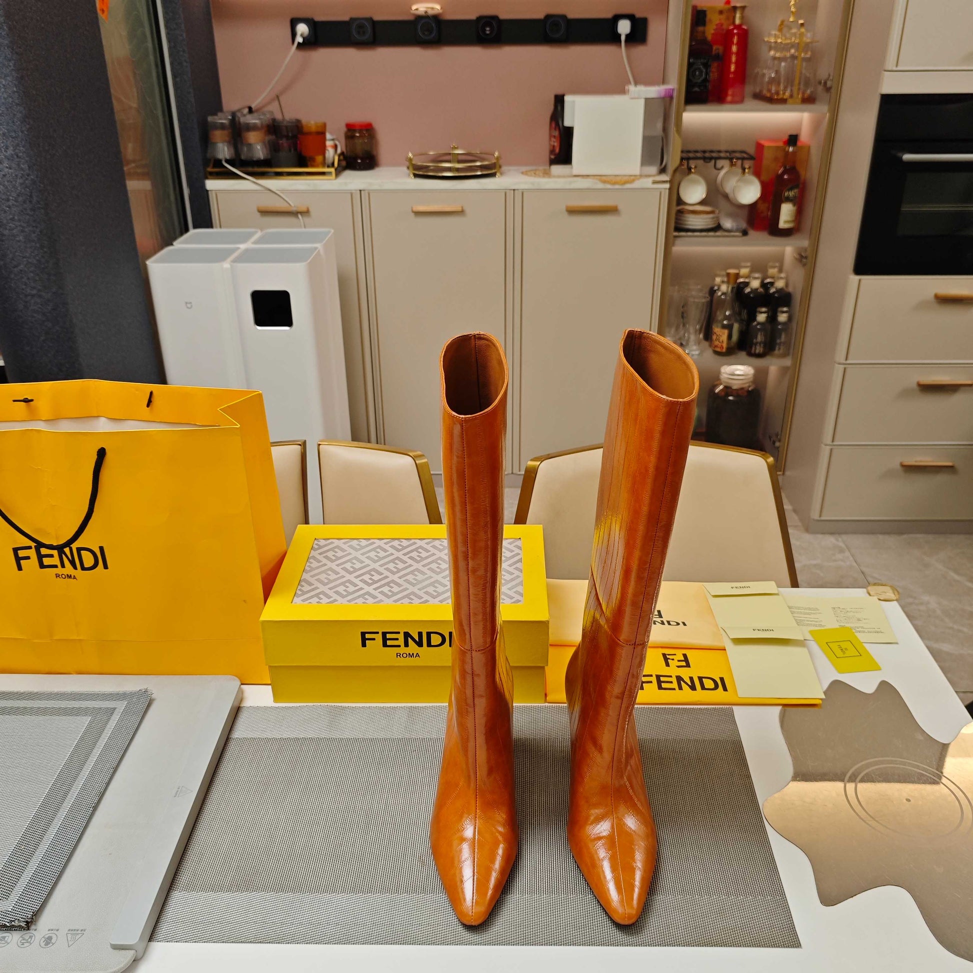 Fendi 25ss high-heeled boots caramel brown sheepskin 502720