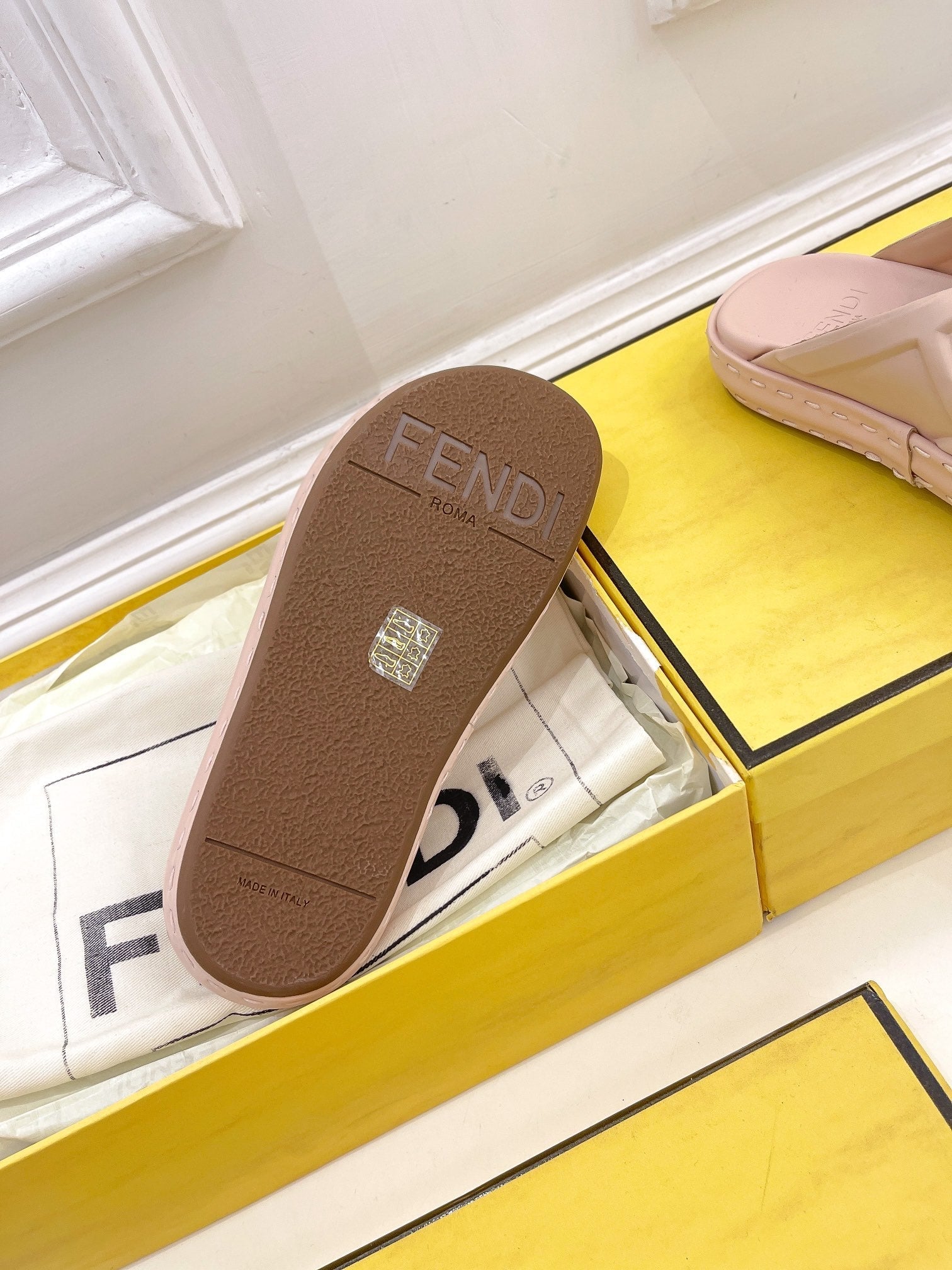 FENDI CROSSOVER SLIPPER IN PALE PINK CALFSKIN