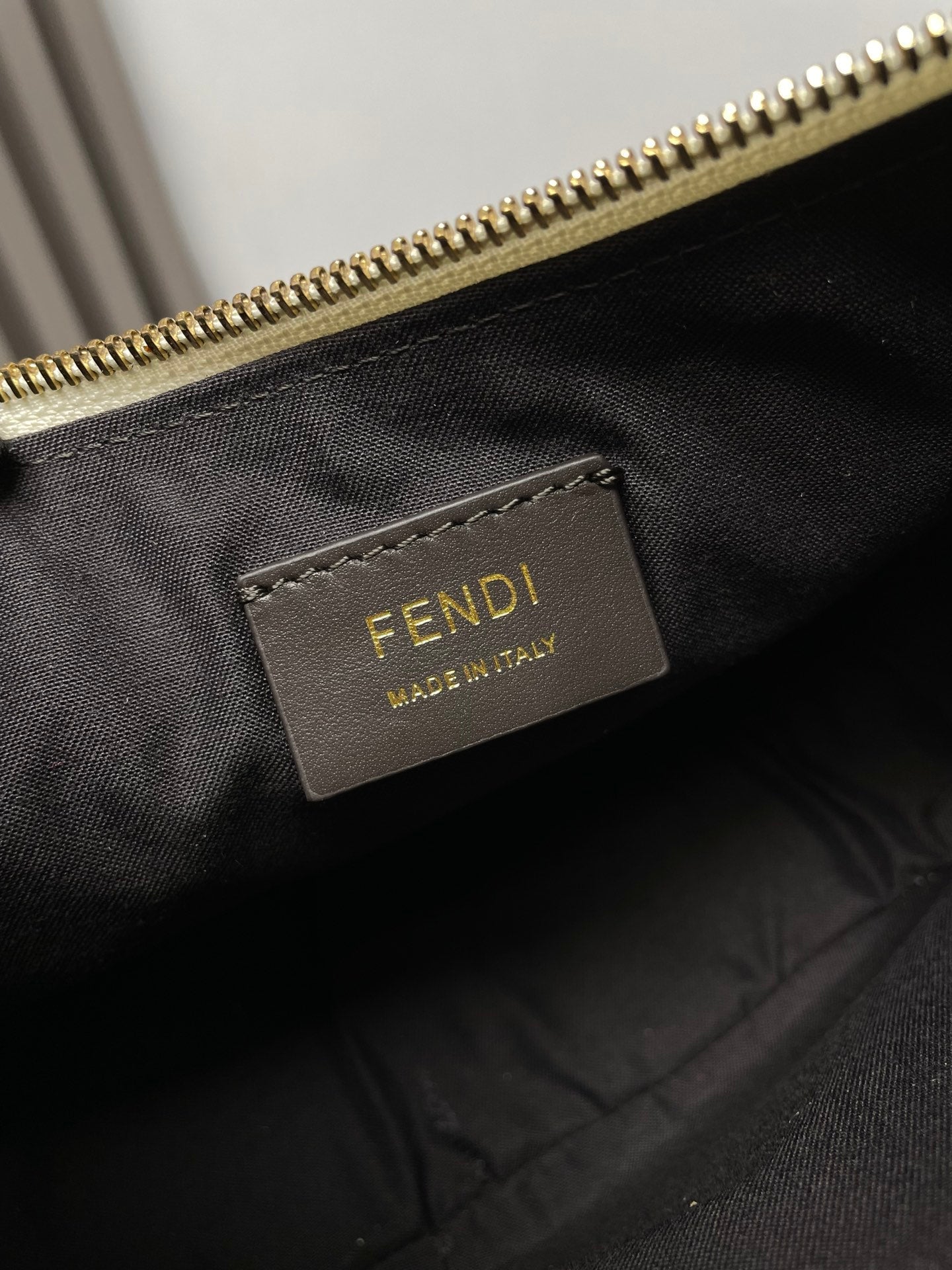 FENDIGRAPHY MEDIUM 29 IN WHITE AND ORANGE TRIM SMOOTH LAMBSKIN GOLD HARDWARE