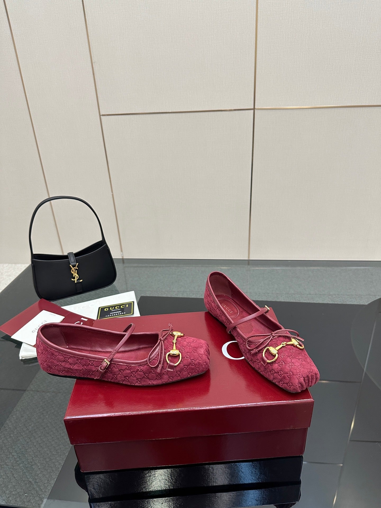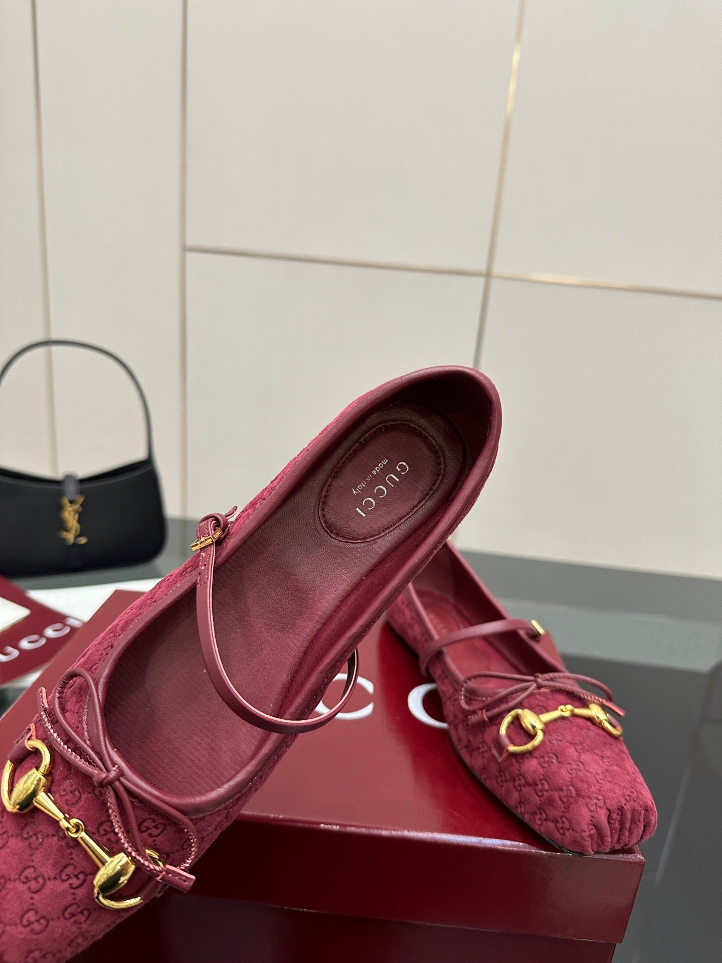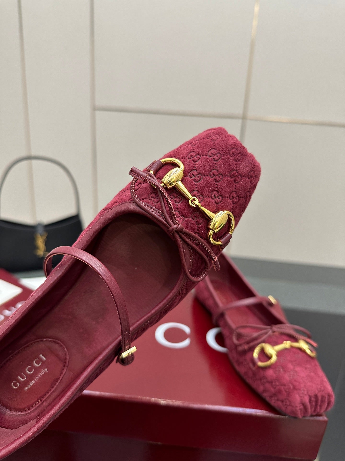 GC 25 Horsebit Ballet Flat Dark Red Monogram Suede