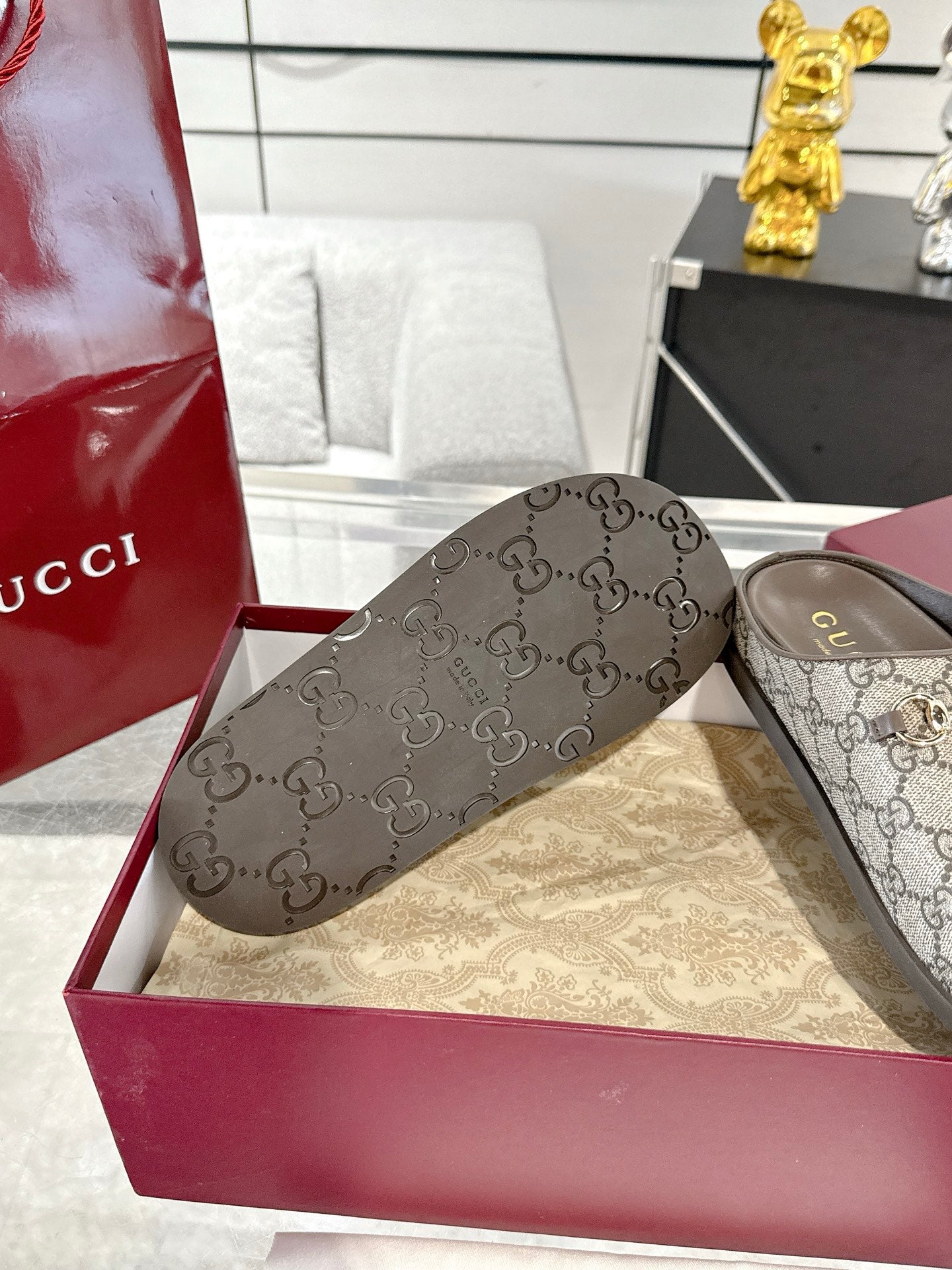 GC 25 Horsebit Mule Beige Ebony Monogram Canvas