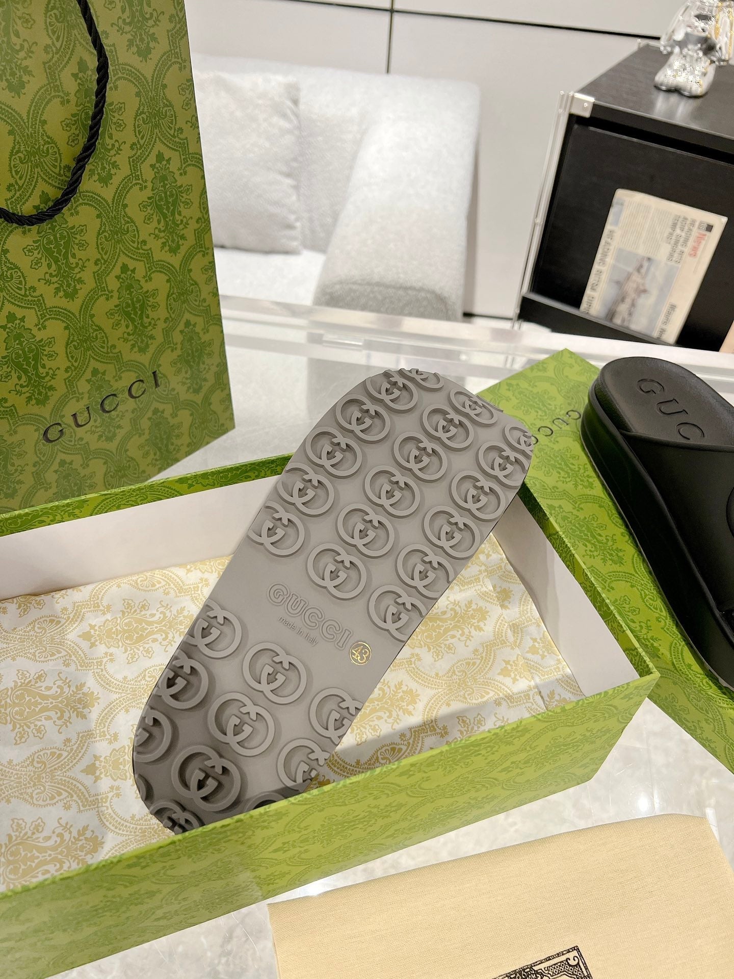 GC 25 Interlocking G 50mm Slide Sandal Black Cowhide 292380