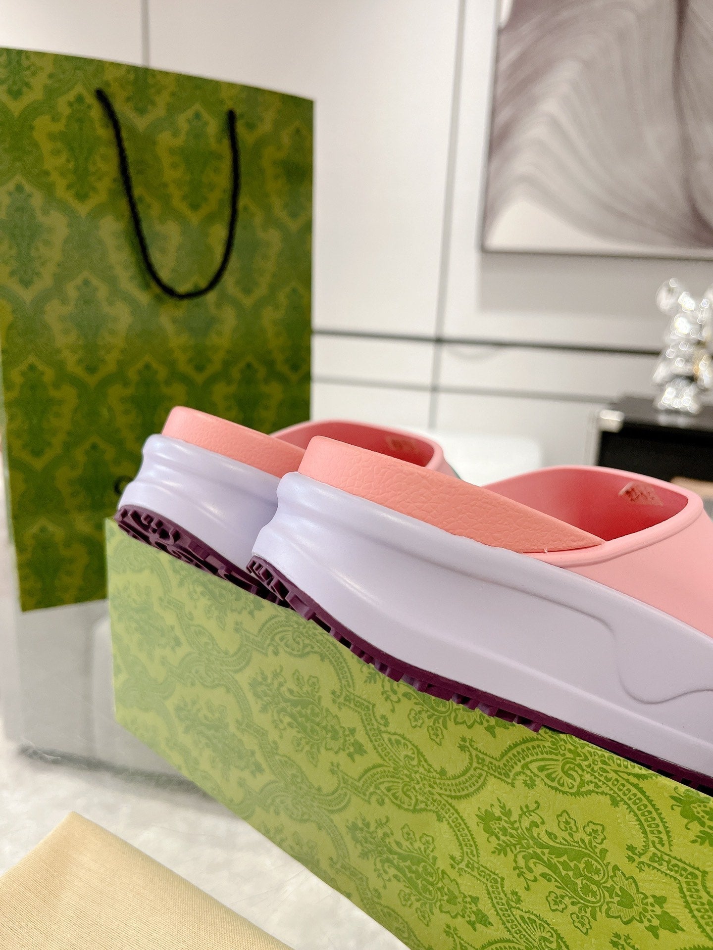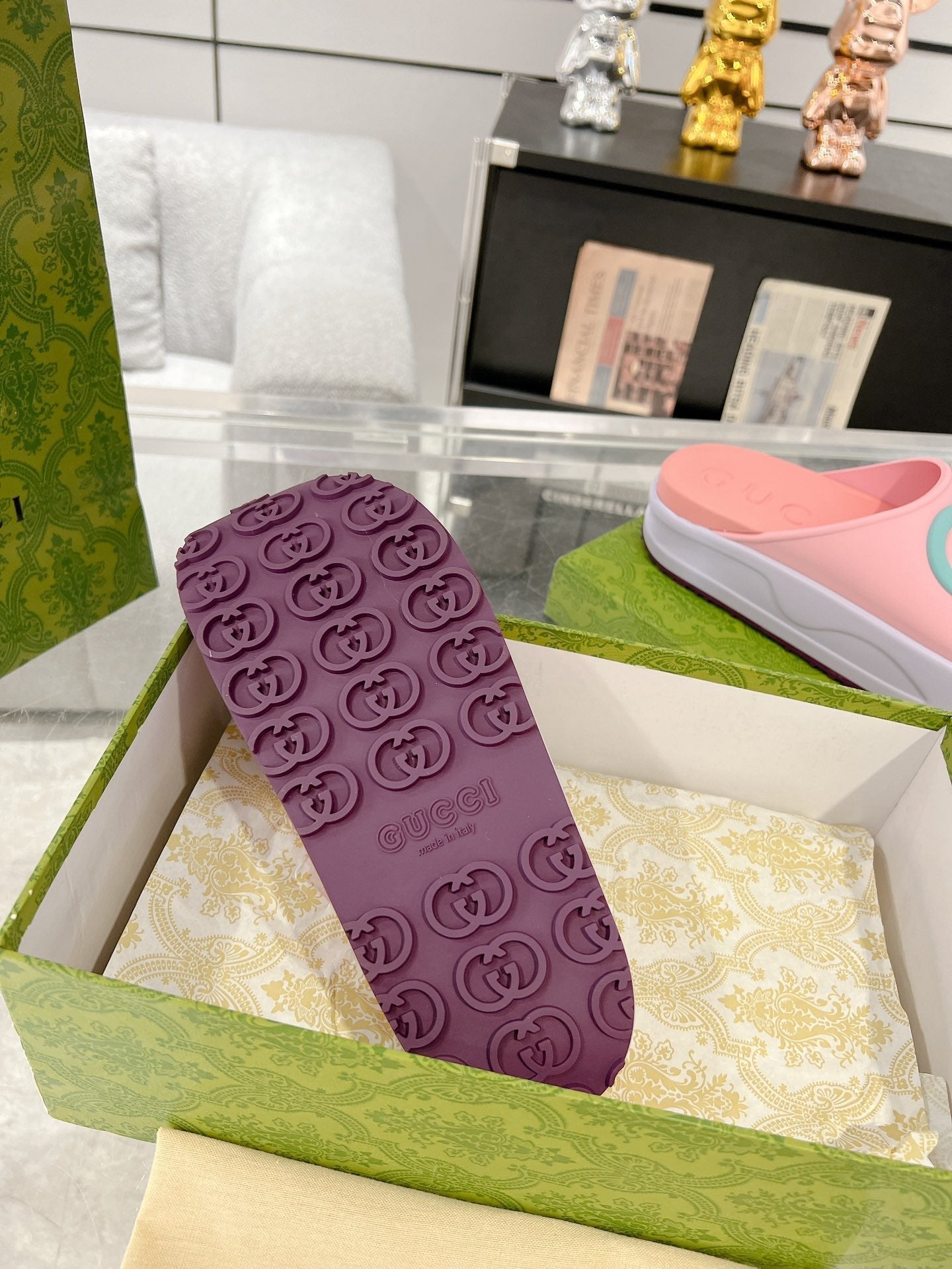 GC 25 Interlocking G 50mm Slide Sandal Pink Blue Cowhide 292397