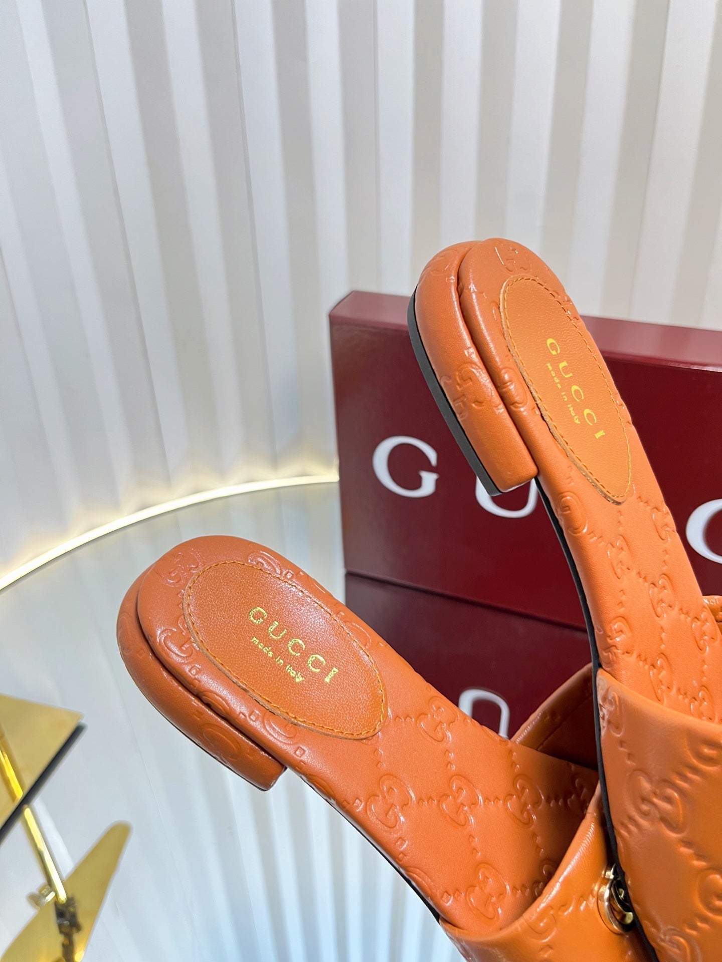 GC Double G Slide Sandals Brown Embossed Leather 294631