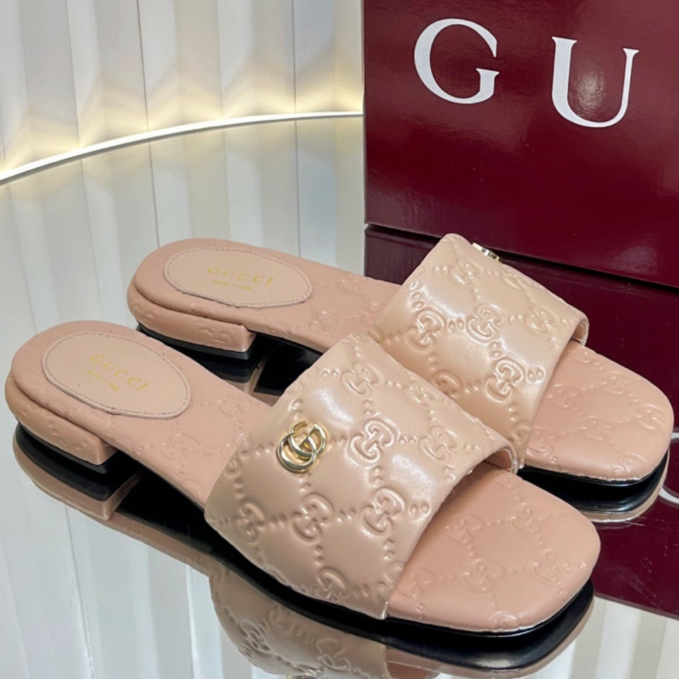 GC Double G Slide Sandals Nude Embossed Leather 294632