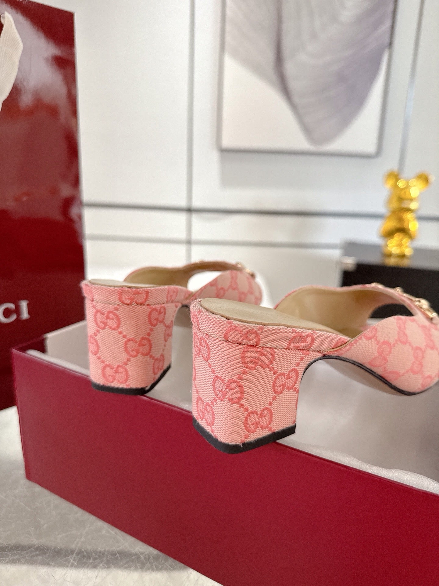 GC Horsebit Slide Pink Canvas Cowhide 292407