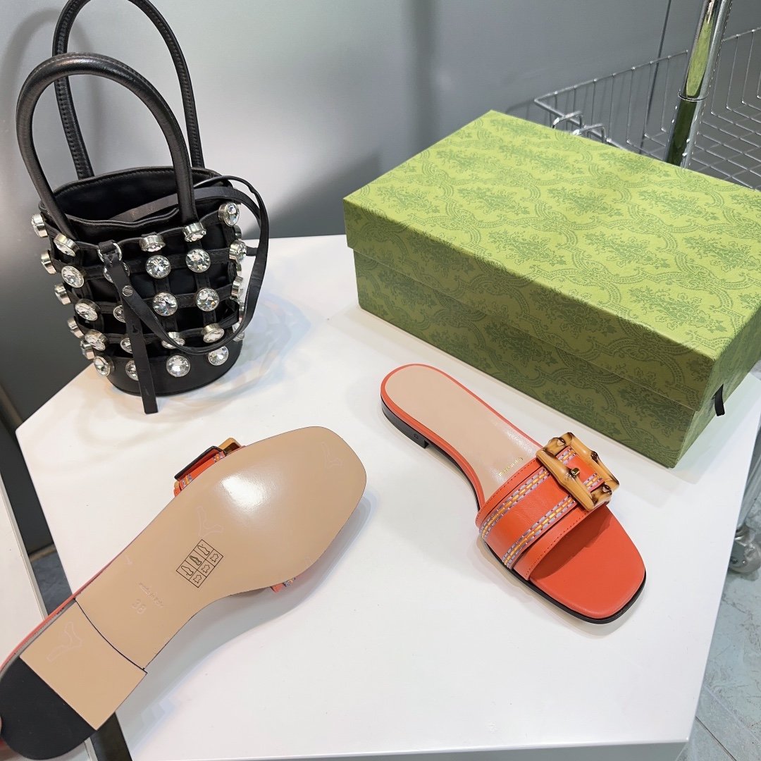 GG BAMBOO BUCKLE FLAT SANDALS ORANGE