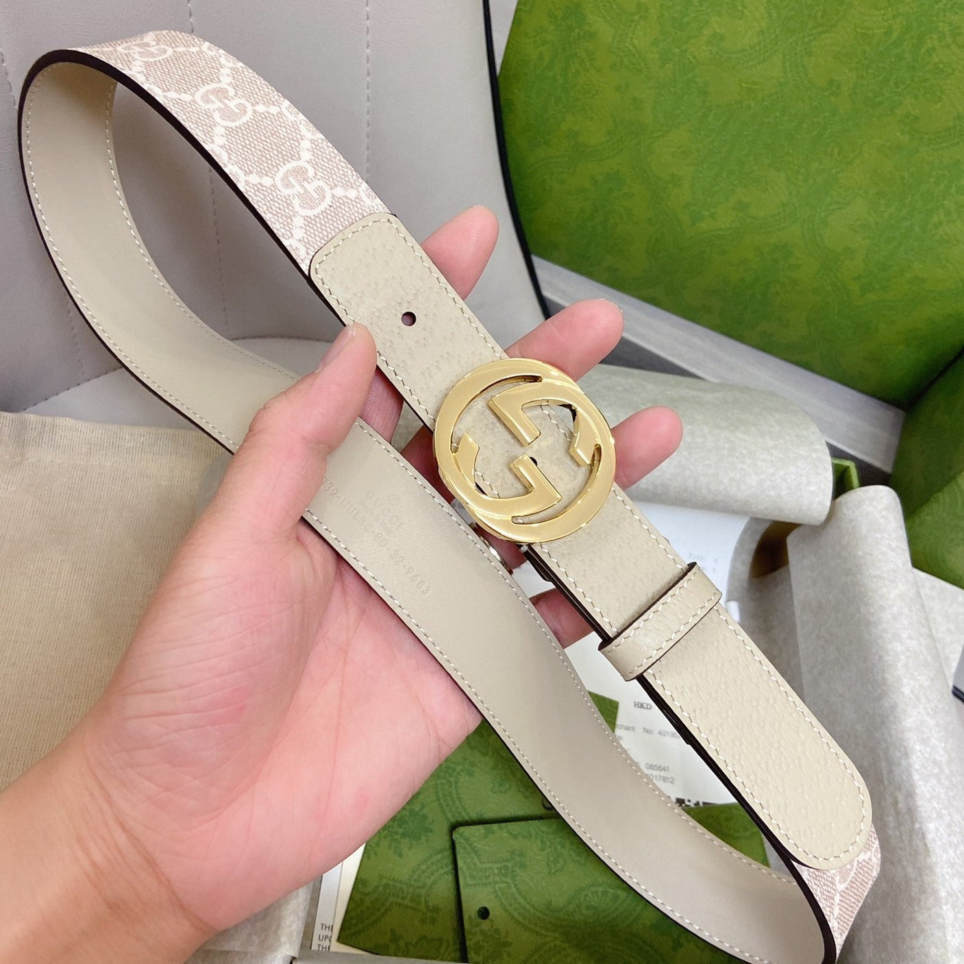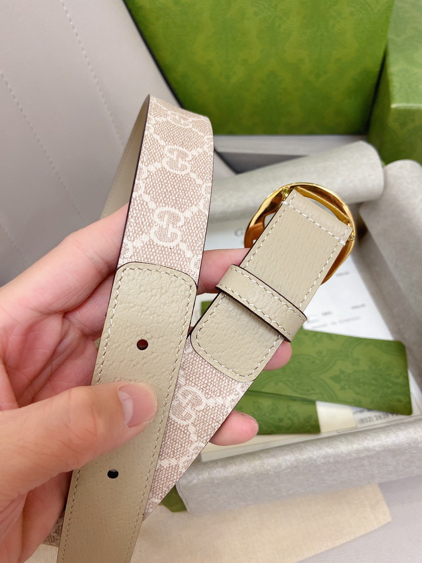 GG BELT DOUBLE G BUCKLE PINK CANVAS