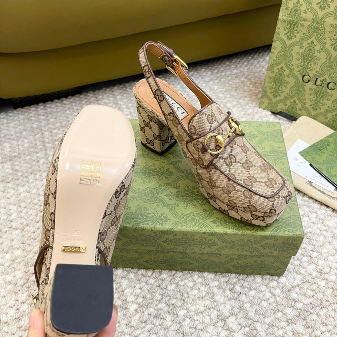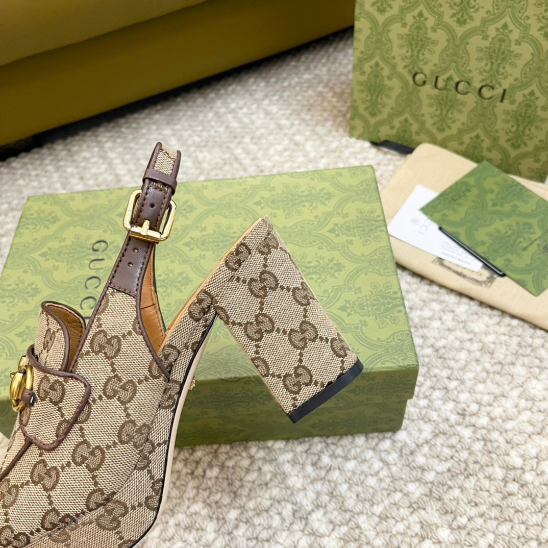 GG HIGH - HEEL SLINGBACK WITH HORSEBIT LIGHT BROWN CALFSKIN