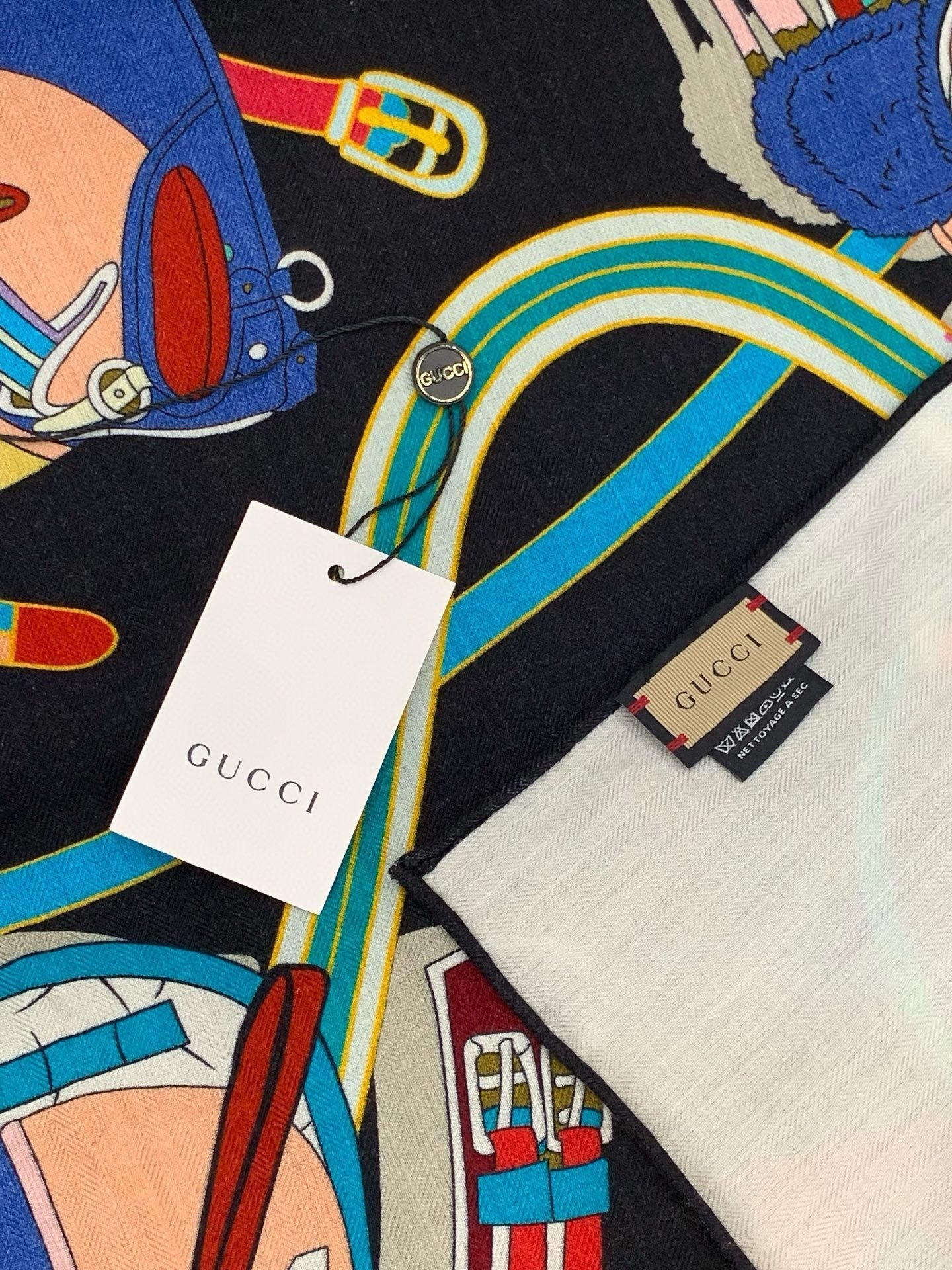 GG Horsebit 135CM Black Colorful Cashmere Silk 275259