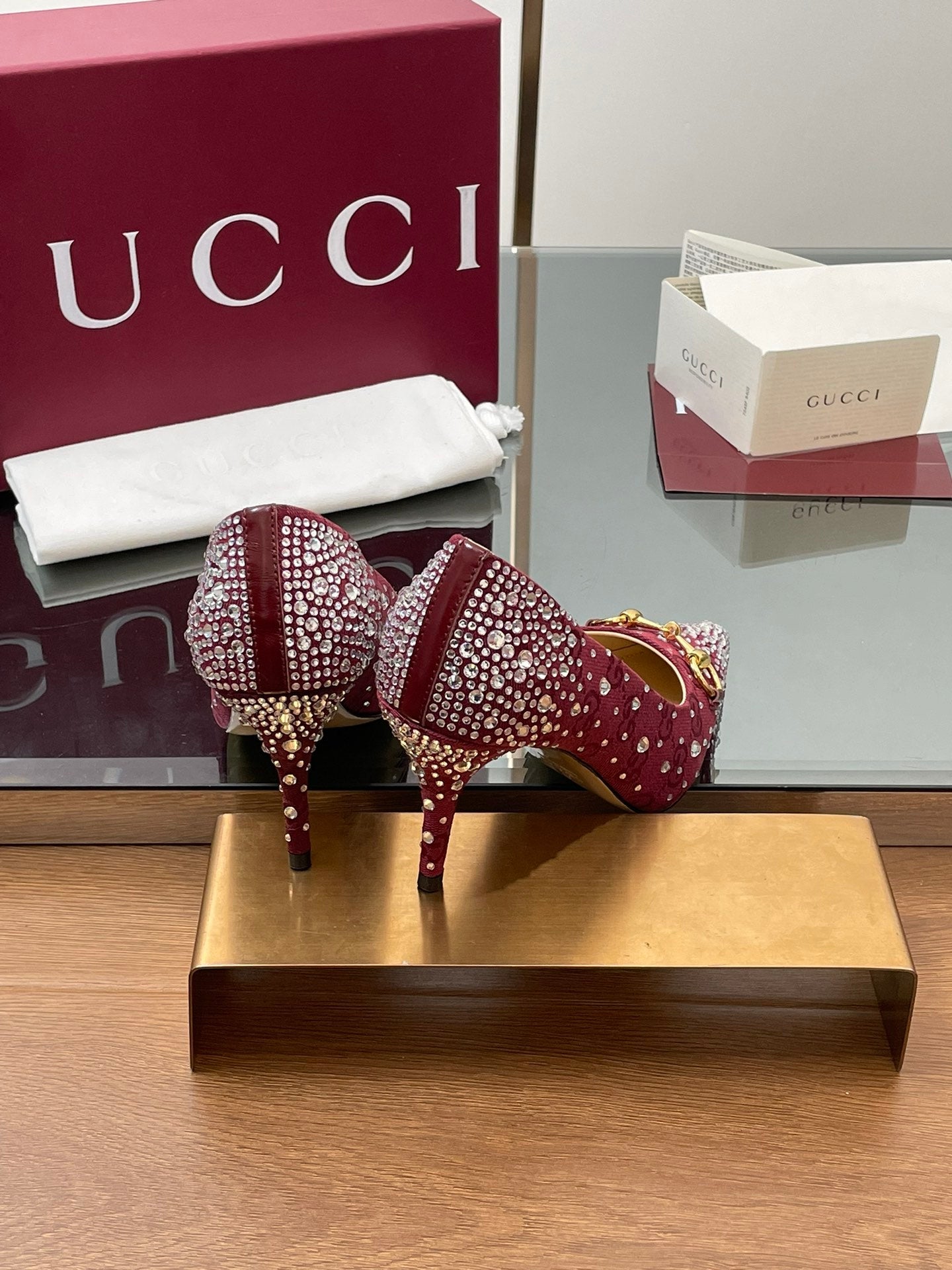 GG Horsebit Pump 85 Red Ebony Monogram Canvas Crystal-Embellished