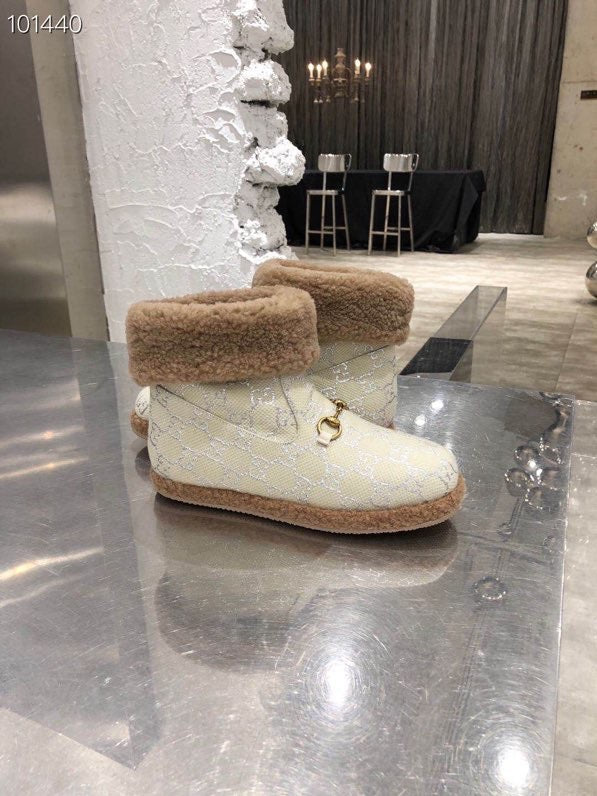 GG Horsebit Snow Cream Brown Woolen Fabric Fleece 576255