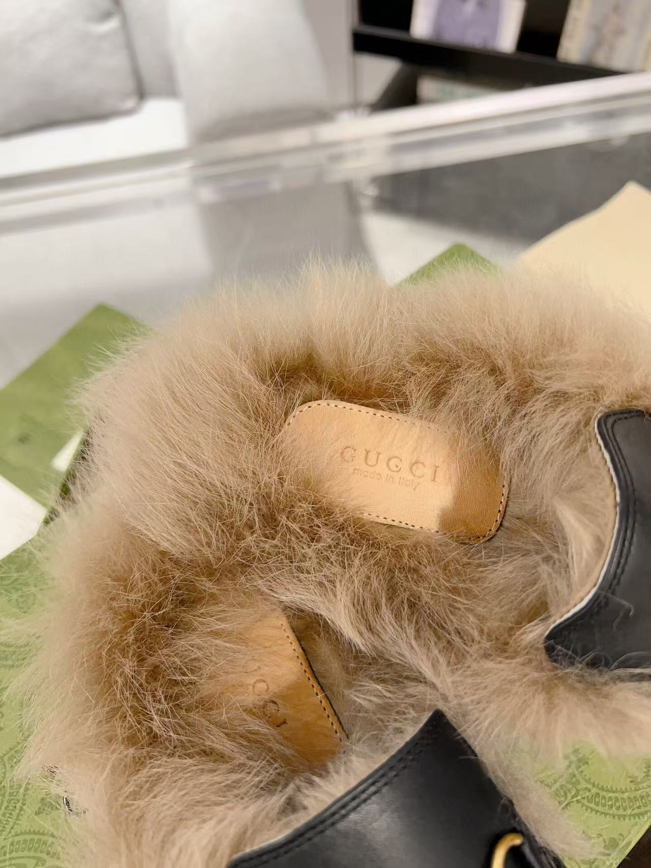 GG Princetown Slipper Black Calfskin Tuscan Wool