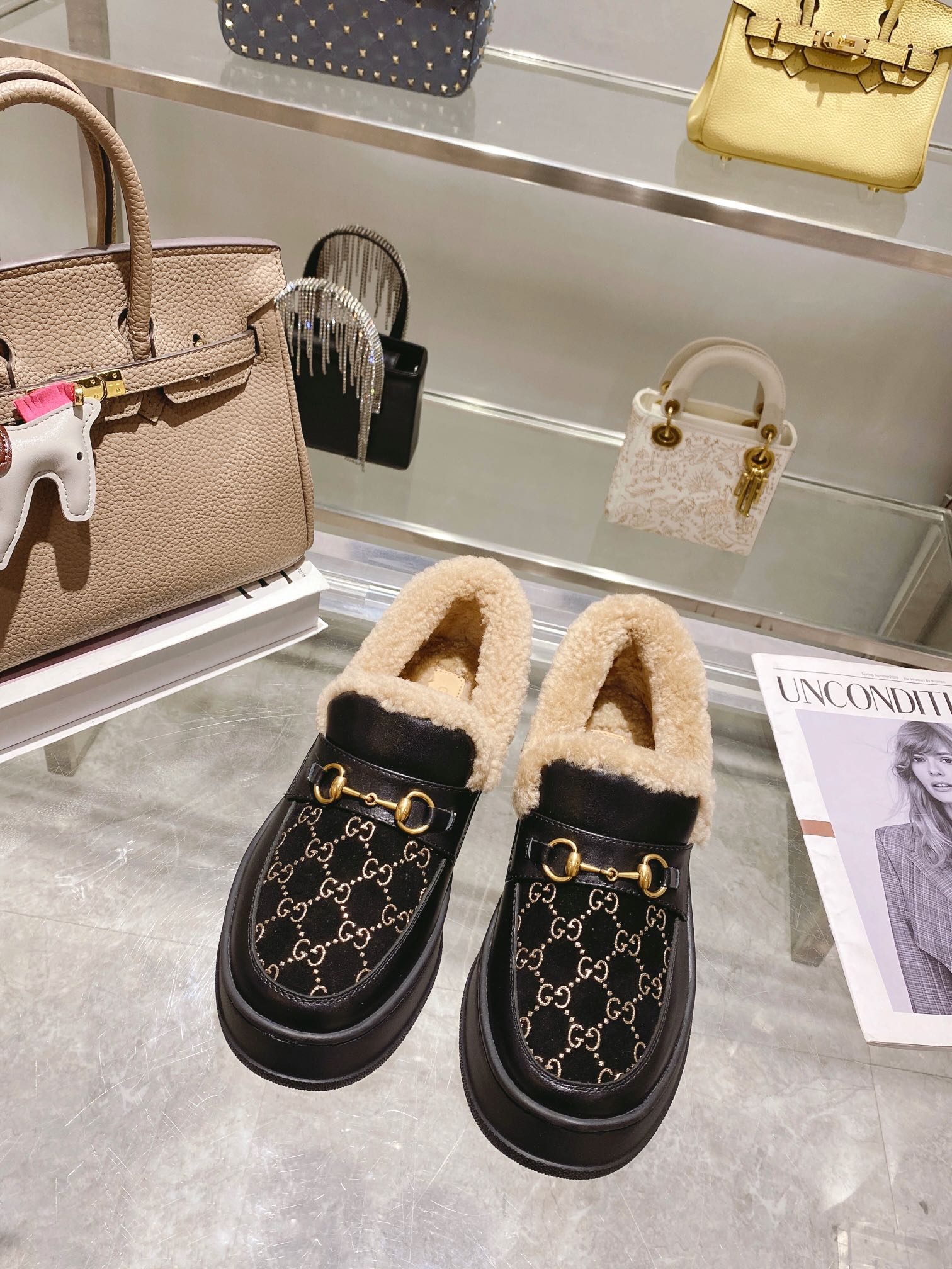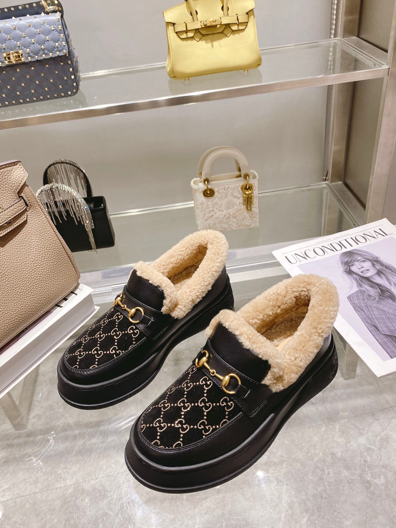 GG Snow Boots Black Cowhide Wool 576234