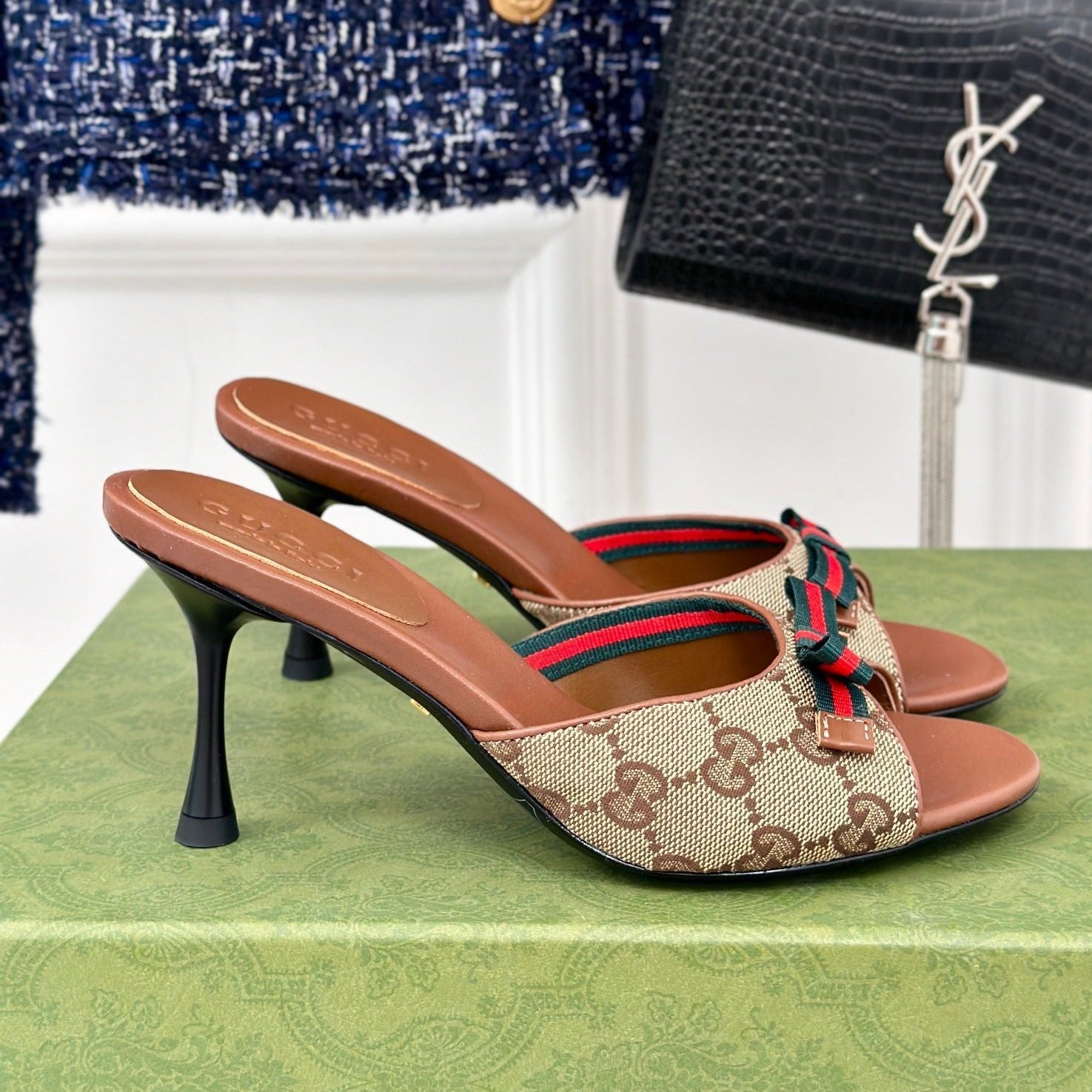 GG Vintage High Heel Slippers Brown