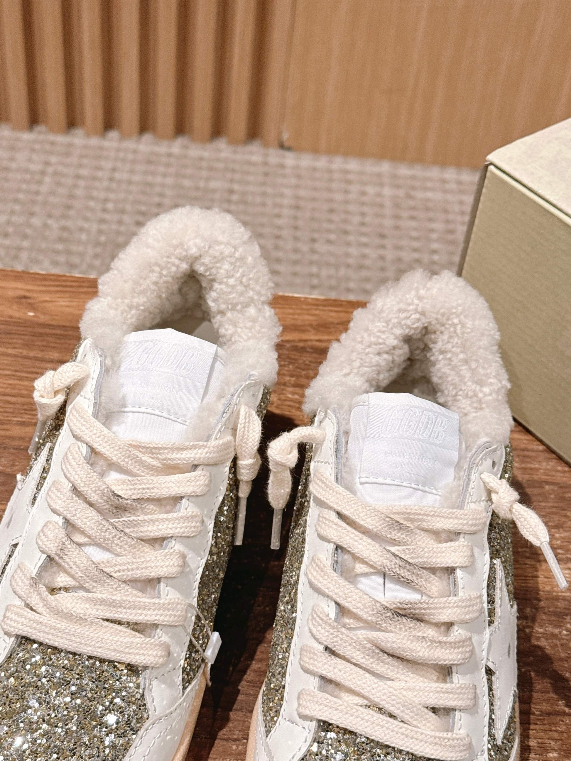 Golden Goose 2025 Wool-Lined Dirty Sneaker White mix Gold Cowhide 444260