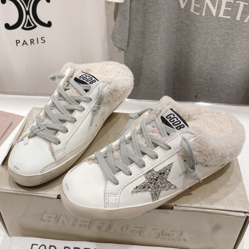 Golden Goose Super-Star Slip-On Sneakers White Gray Suede Leather 485387