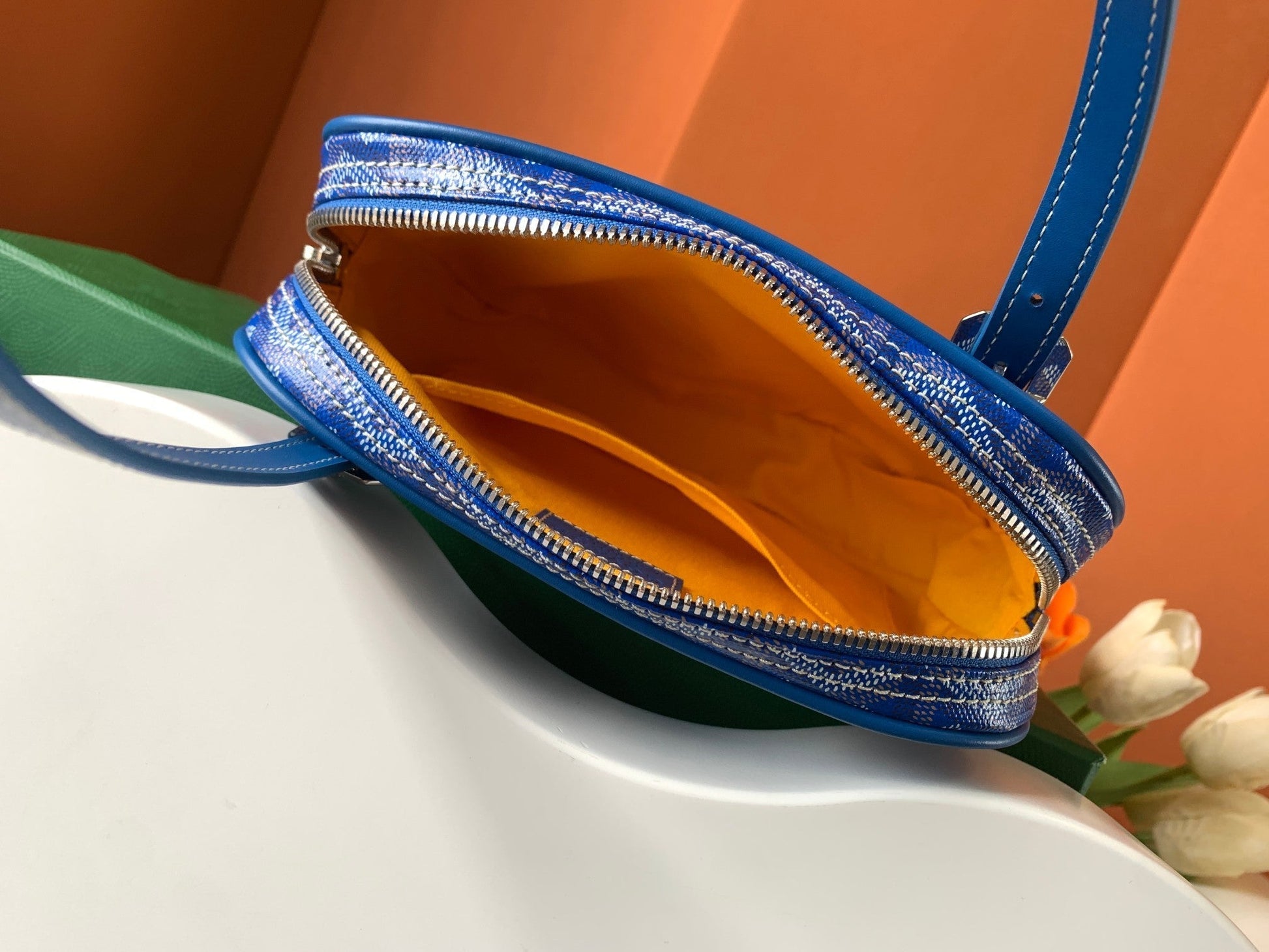 - Material: Goyardine canvas & chevroches calfskin