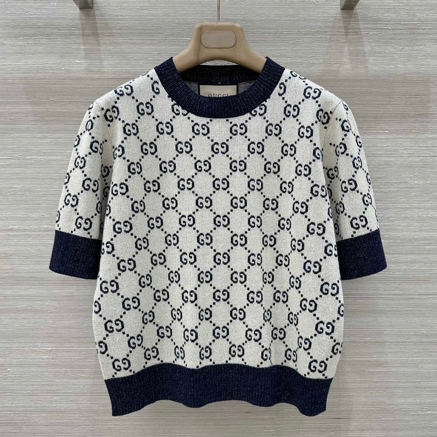 Gucci 2025 Knitted Round Neck Short-sleeved Top Blue Gray Cotton