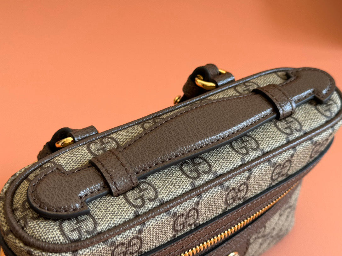 Gucci 2025 Ophidia Vanity 20cm Bag Beige And Dark Brown Canvas Leather
